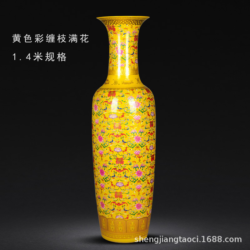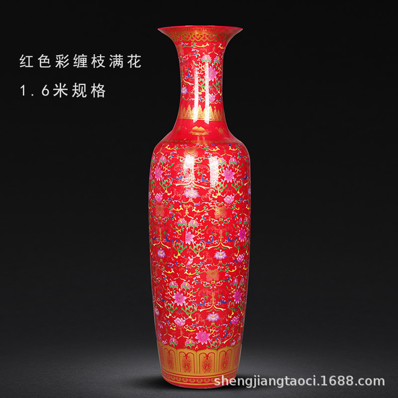 景德镇陶瓷器中式开业中国红客厅装饰瓷器酒店落地大花瓶别墅摆件