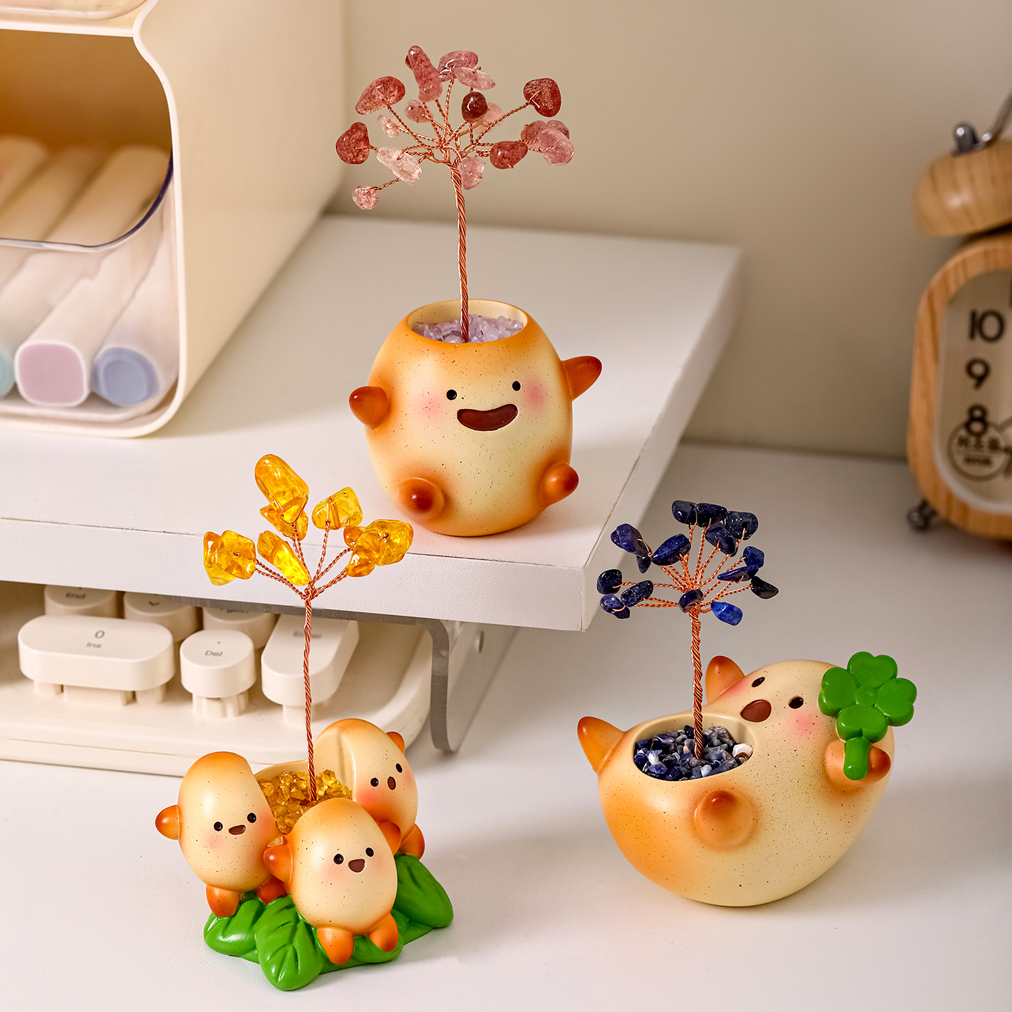 水晶发财树摆件办公室工位情绪稳定解压神器桌面装饰招财好运礼物