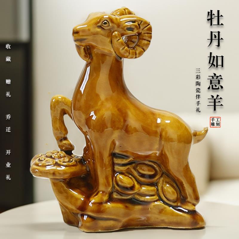 陶瓷器黄色如意羊办公室客厅家居小号土黄色羊饰品装饰生肖羊摆件