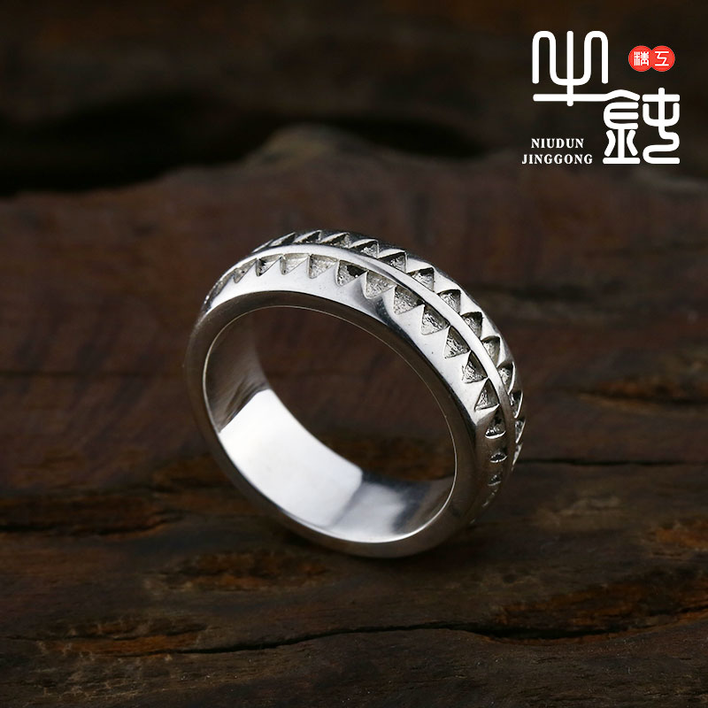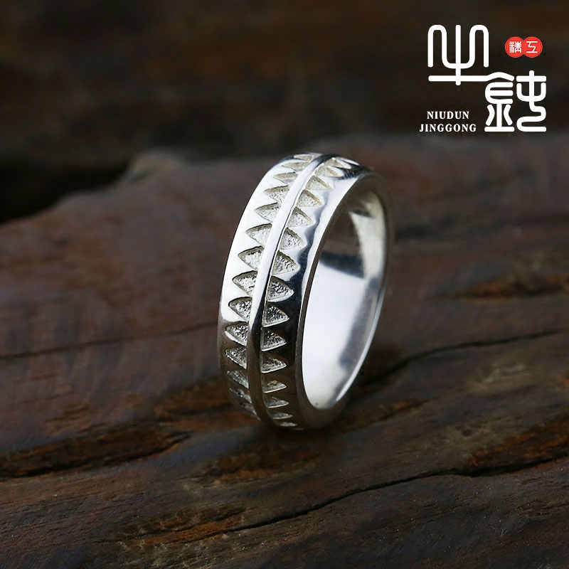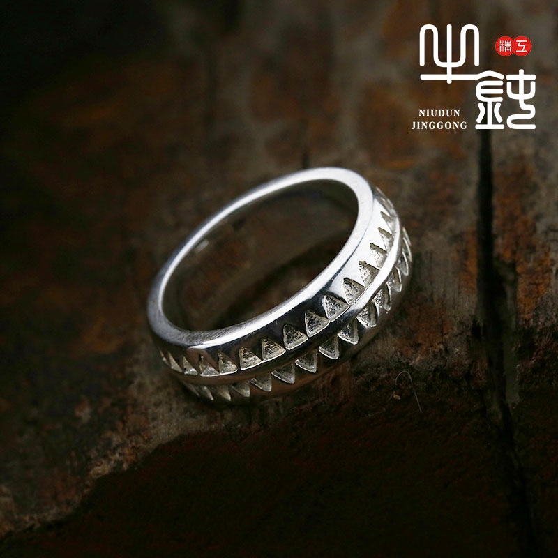 牛钝精工 Undercover Giz高桥盾锯齿纹身图腾戒指原色925纯银复刻