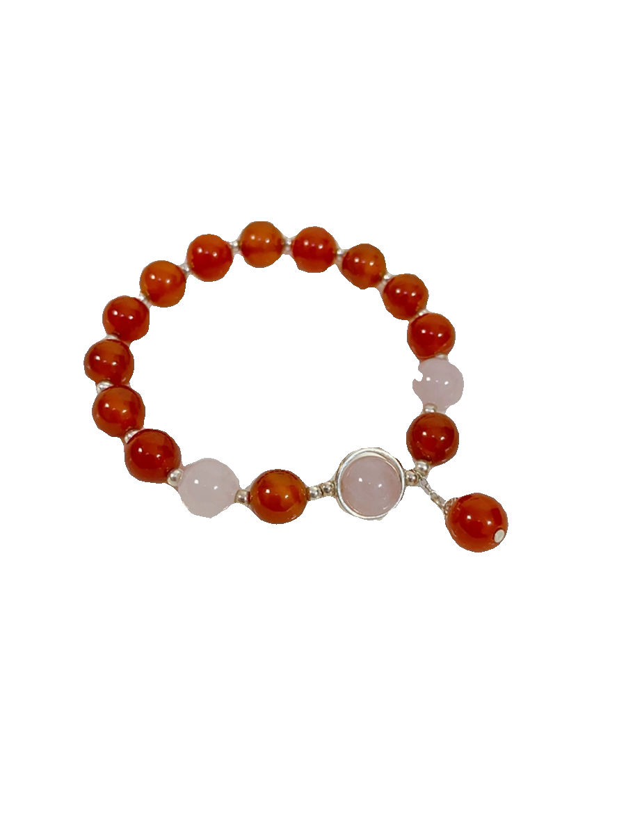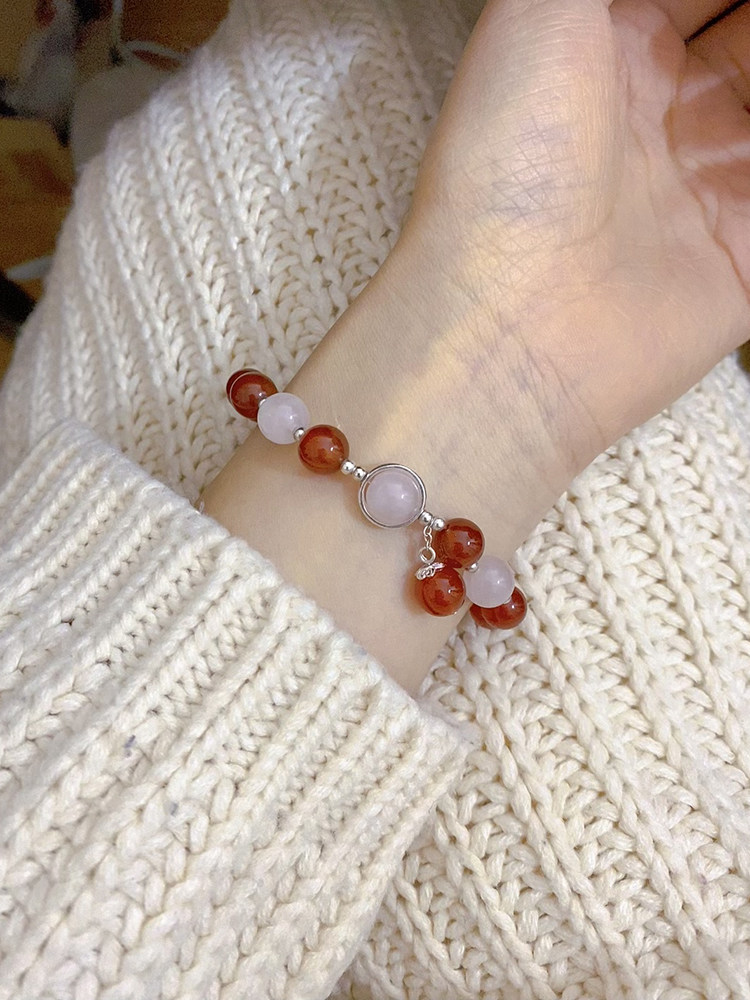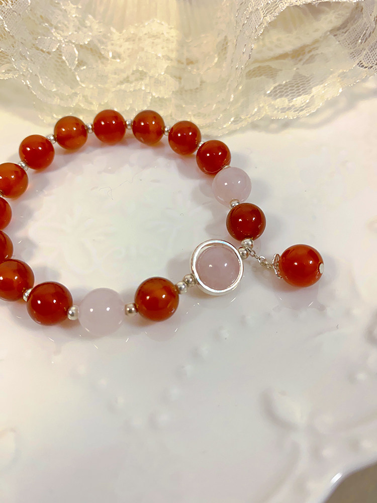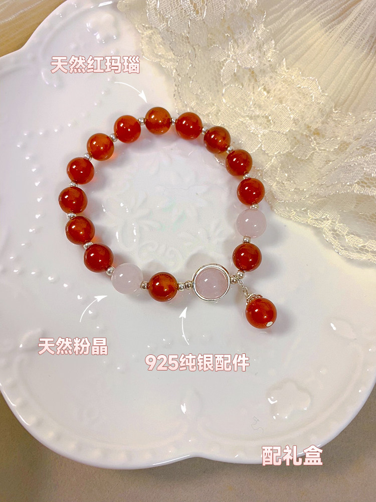 新年好运加倍天然红玛瑙粉晶手链女纯银本命年转运珠红色手串礼物
