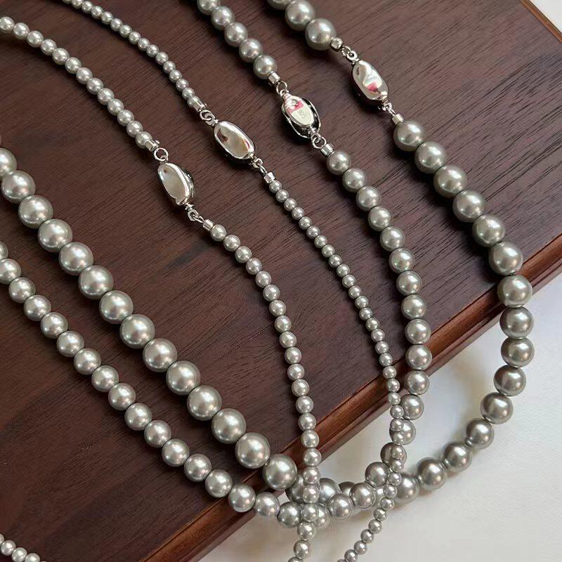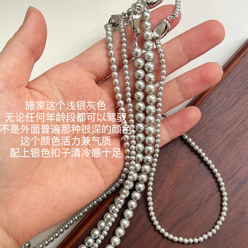 fever博主倪妮同款施家真多麻银灰色珍珠项链高级灰锁骨链女轻奢
