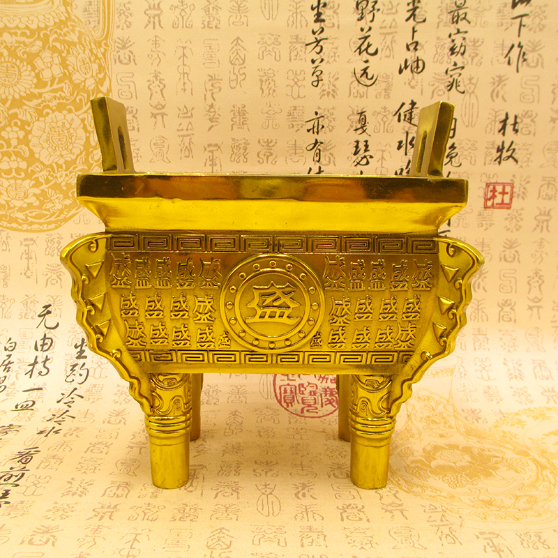 铜鼎摆件鼎盛千秋盛鼎香炉聚财四方鼎双龙宝鼎家用客厅办公桌装饰