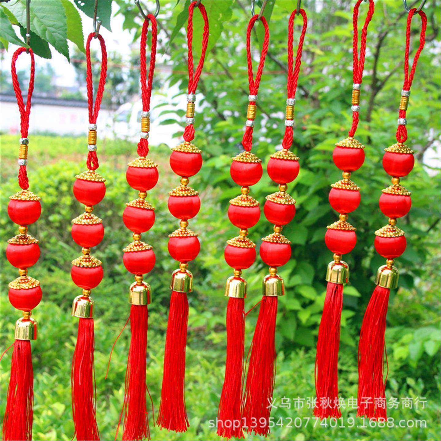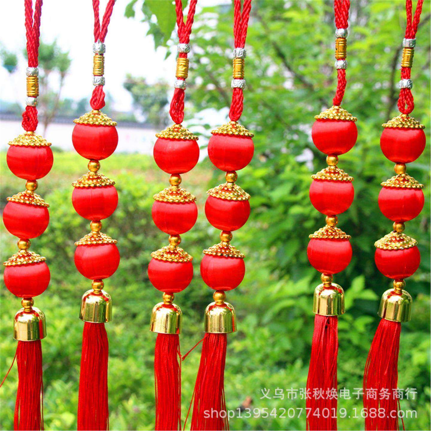 喜庆丝线红色带帽三个灯笼串植物小挂件装饰新房乔迁小灯笼年货