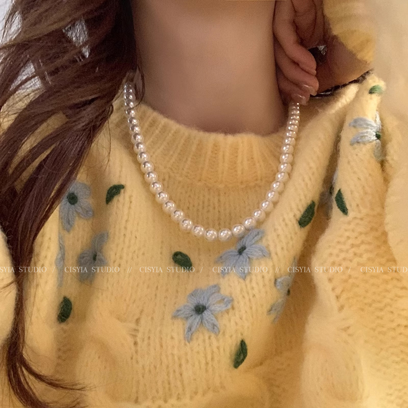 倪妮同款珍珠项链颈链轻奢小众choker锁骨链女款高级感毛衣链精致