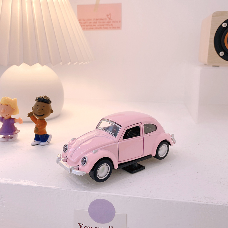 速发可爱粉色复古小汽车摆件 书桌焙摆车载合金车烘设装饰