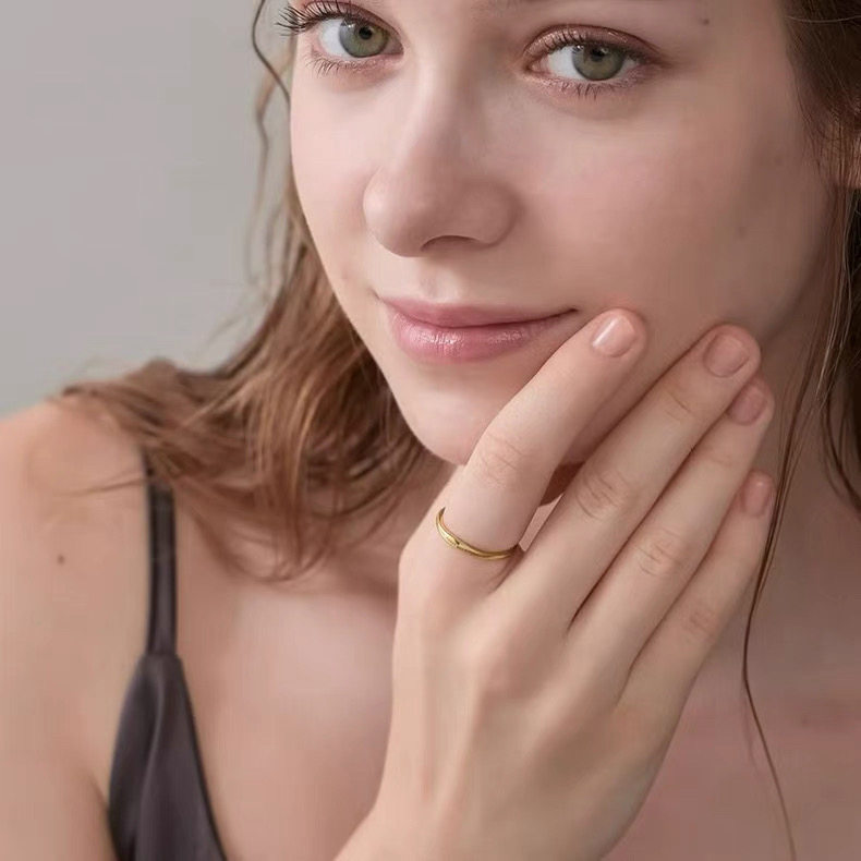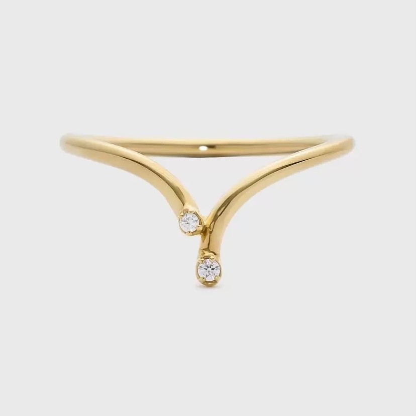 日系轻奢nojess 时尚简约 交叉层叠 字母小钻 V型 纯银戒指