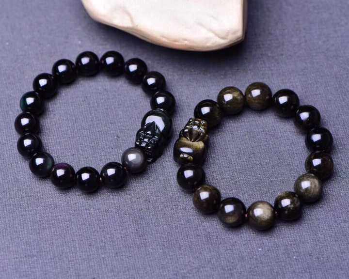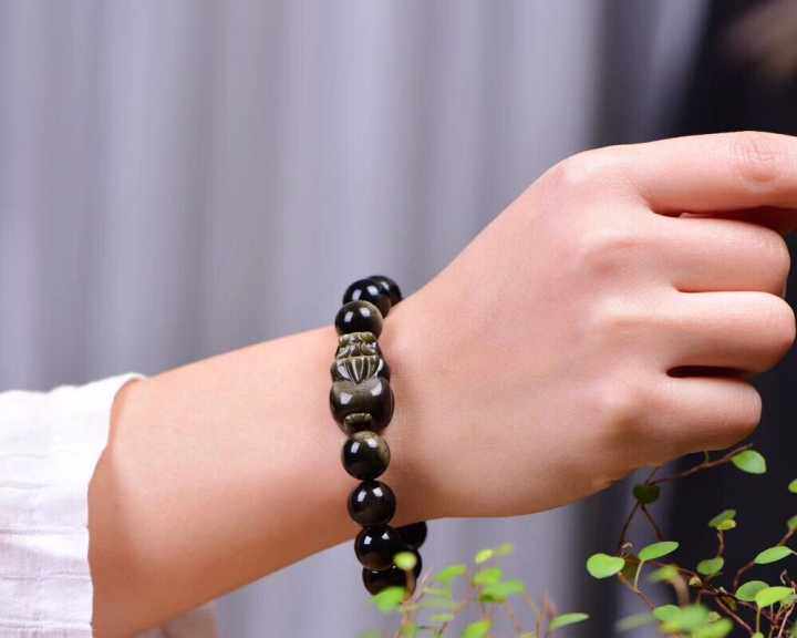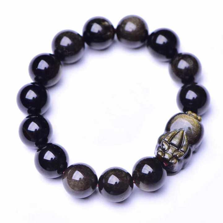 2026金黑曜石貔貅手串招财转运佛珠皮丘礼物彩眼手链男女款