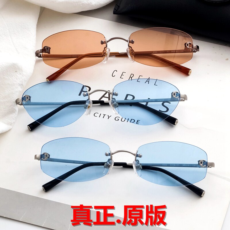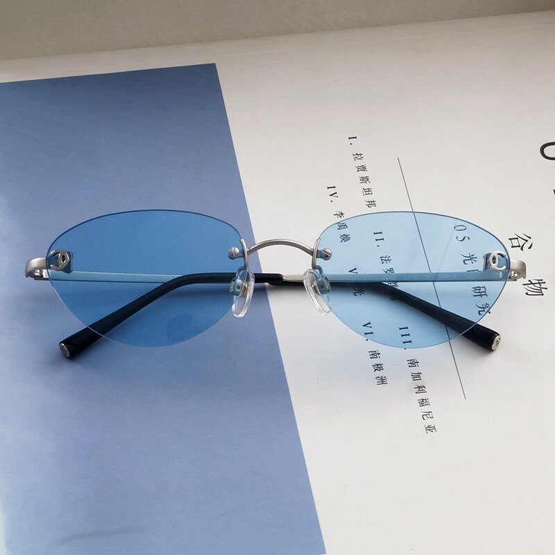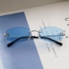 JENNIE演唱会同款蓝色墨镜女中古无边框时髦高级感方圆脸太阳眼镜