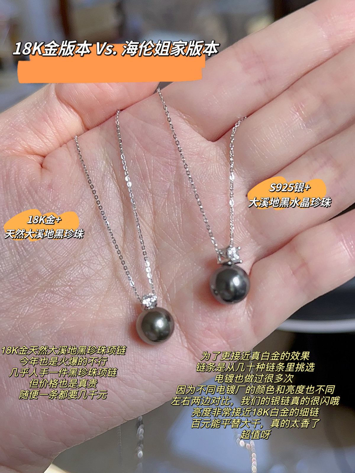 新品四色王妃款S925银珍珠吊坠项链白色金色铂金灰色轻奢小众简约