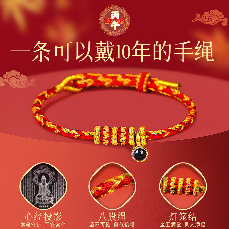 普陀山2026马年本命年红绳手链男女款太岁守护编织红色手绳护身符