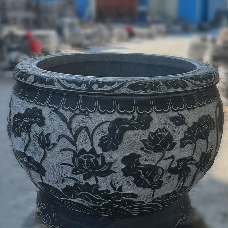 石雕仿古青石荷花缸鱼缸户外庭院别墅公园水缸石雕荷花圆形花盆