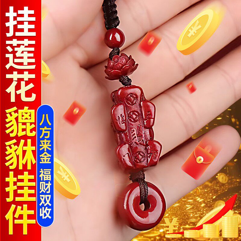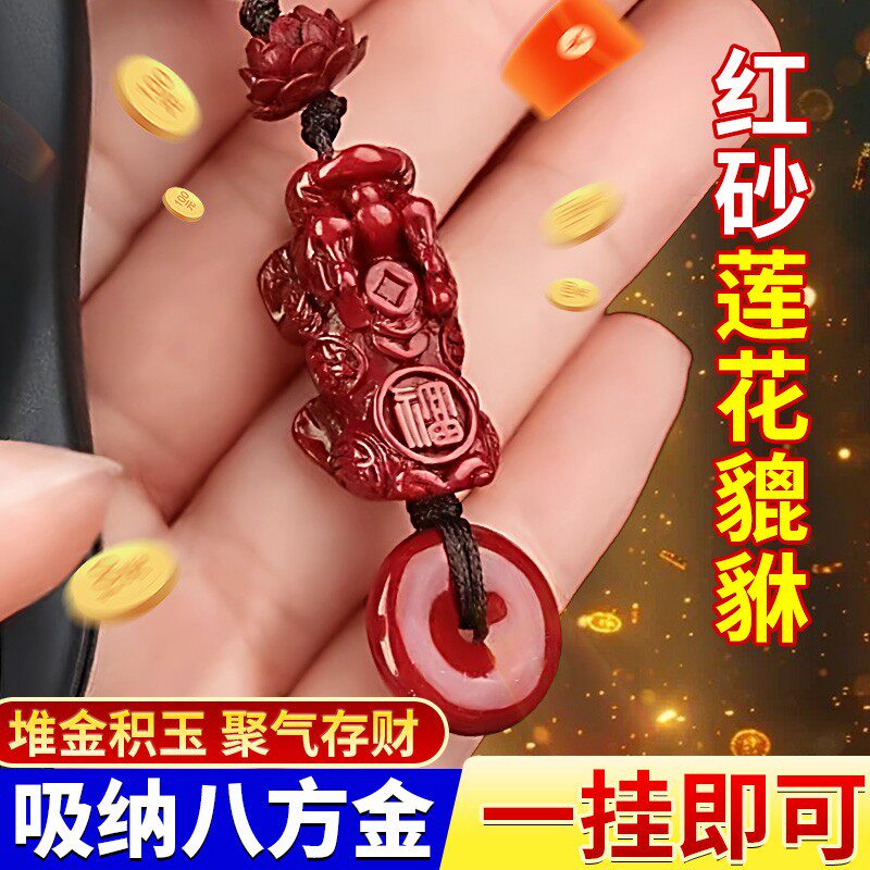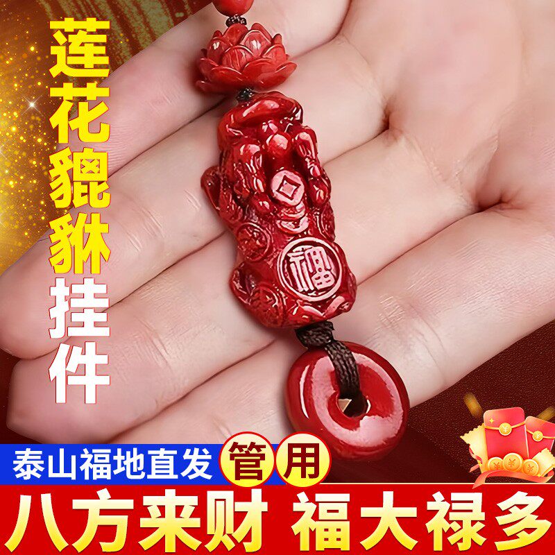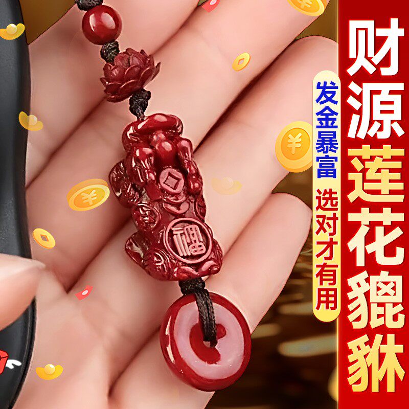 朱砂红沙莲花貔貅平安扣招挂件钥匙扣财摆件本命年男女礼品钥匙链