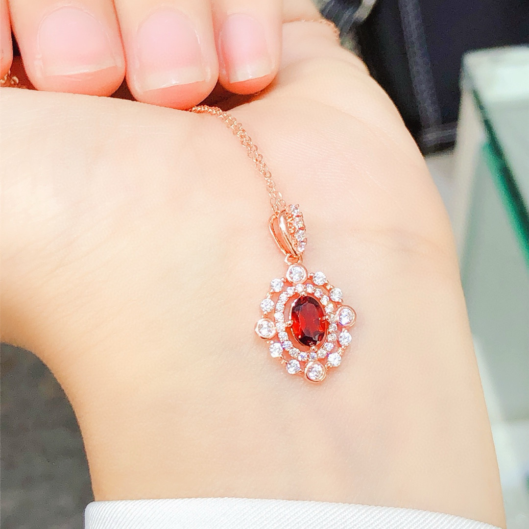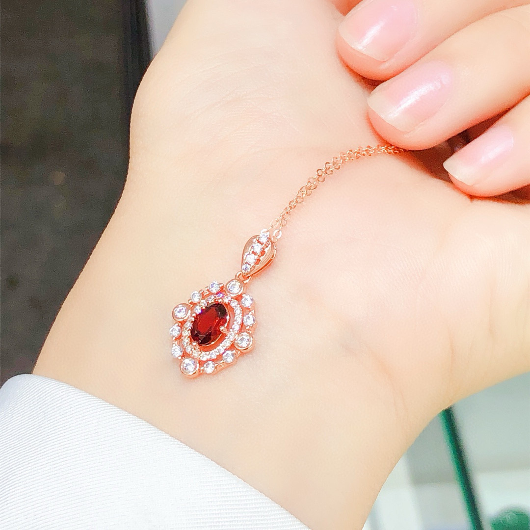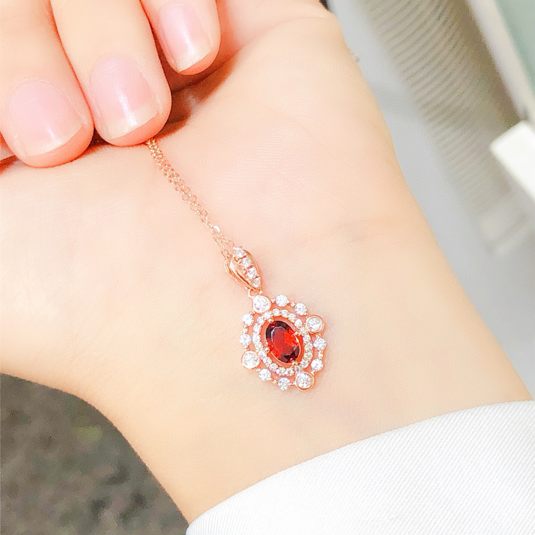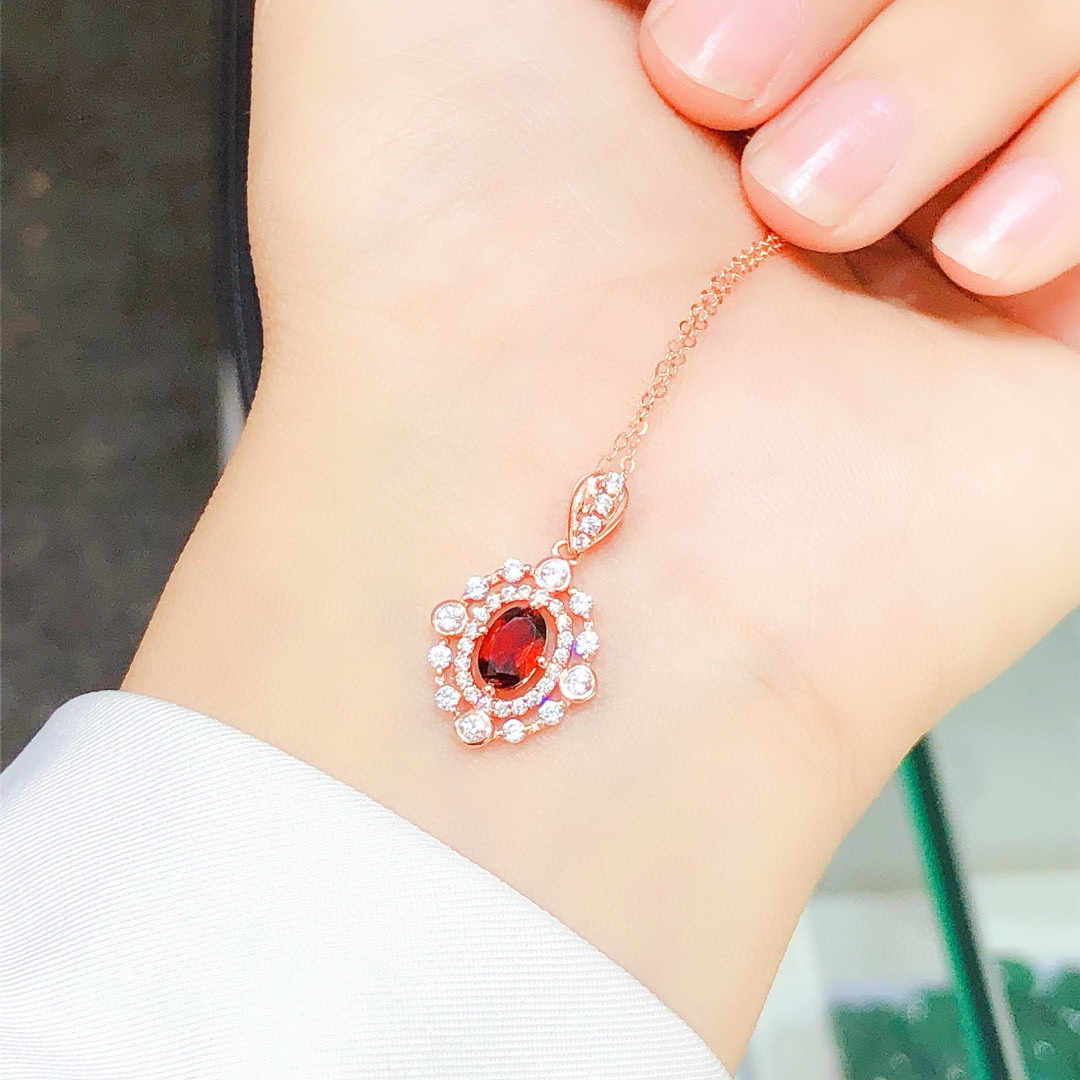 8月上新天然红色宝石石榴石吊坠银镀18k金显气质女彩色宝石镶钻