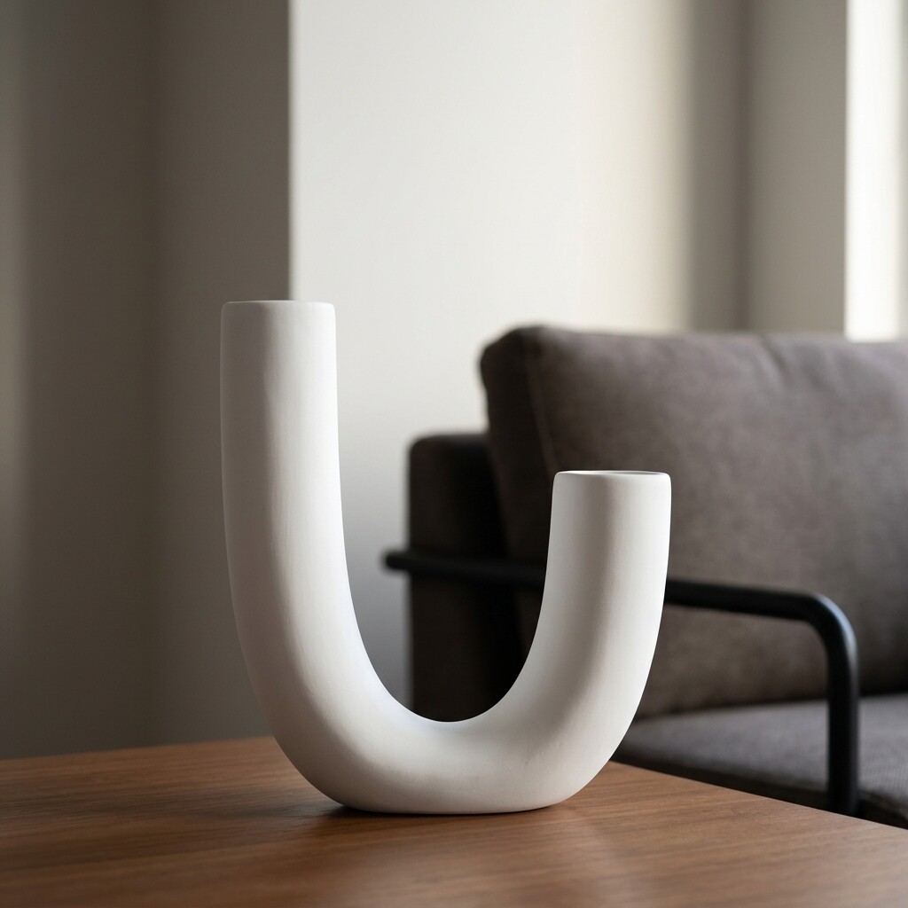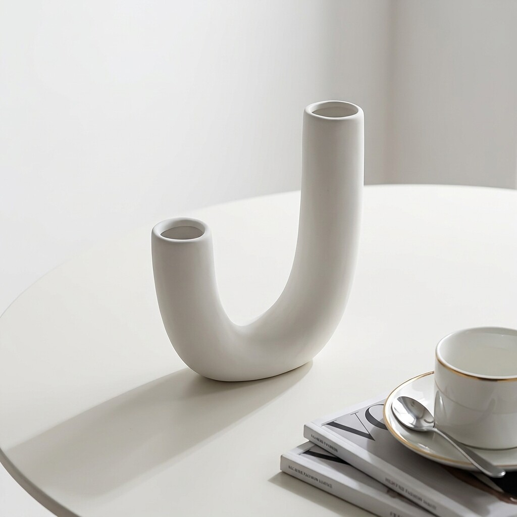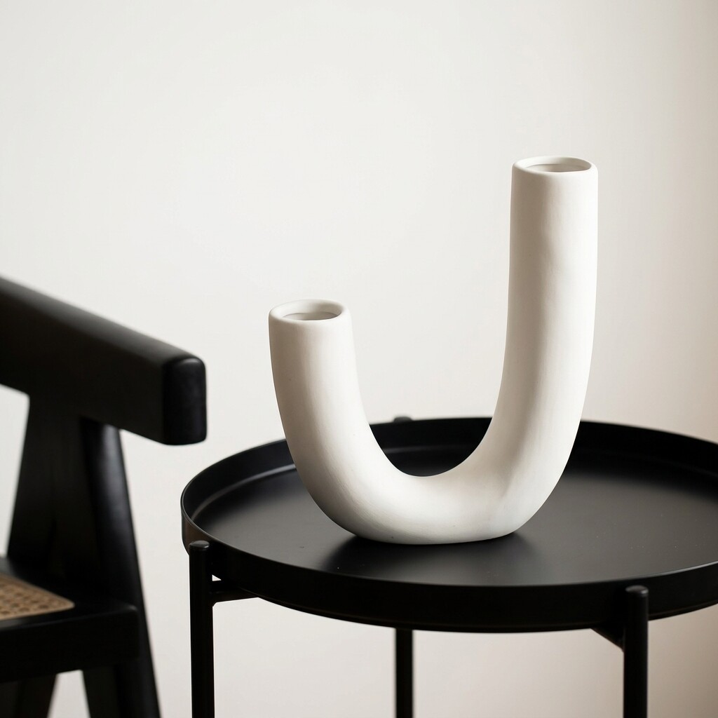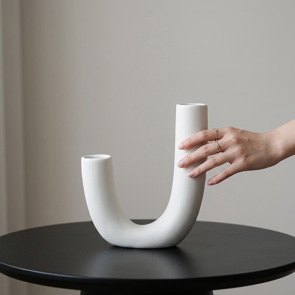 简约风白色U型陶瓷花瓶家居装饰摆件现代艺术高级感
