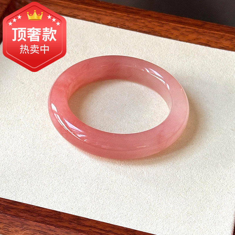 天然翡翠缅A平替桃花酿玉手镯子粉晶道具拍照儿童琉璃手镯送礼物