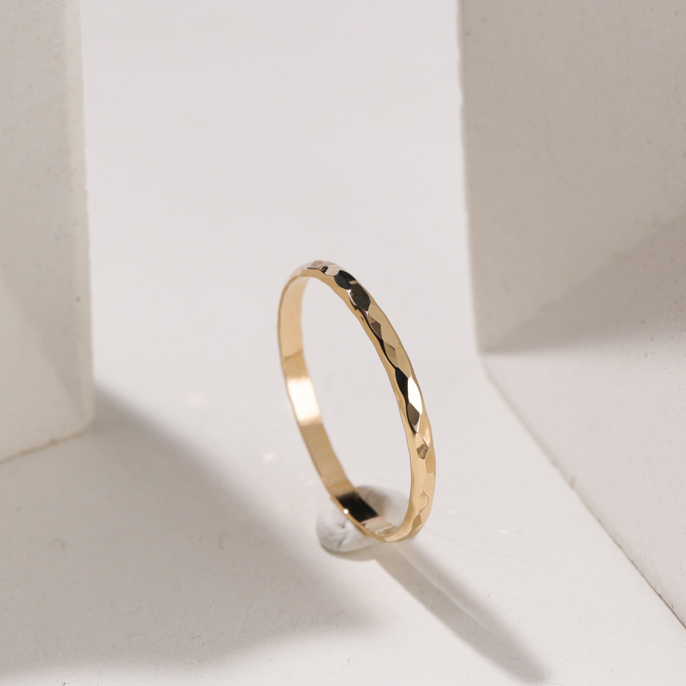 14K包金手工切面1.6mm 金色尾戒指环 闺蜜女中指戒指细 欧美简约
