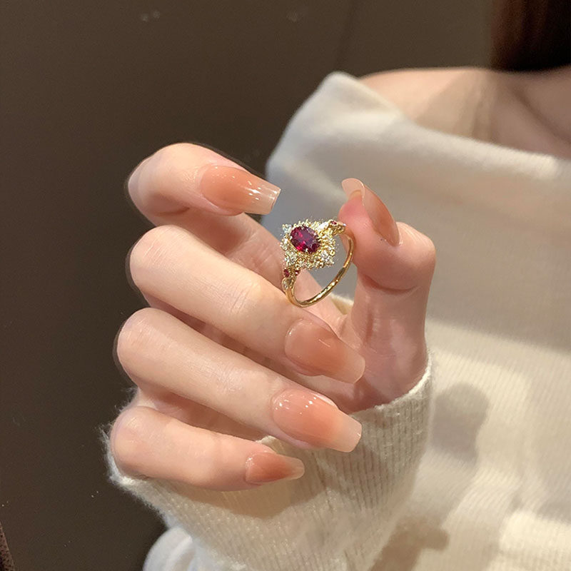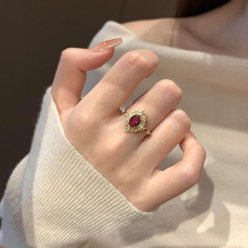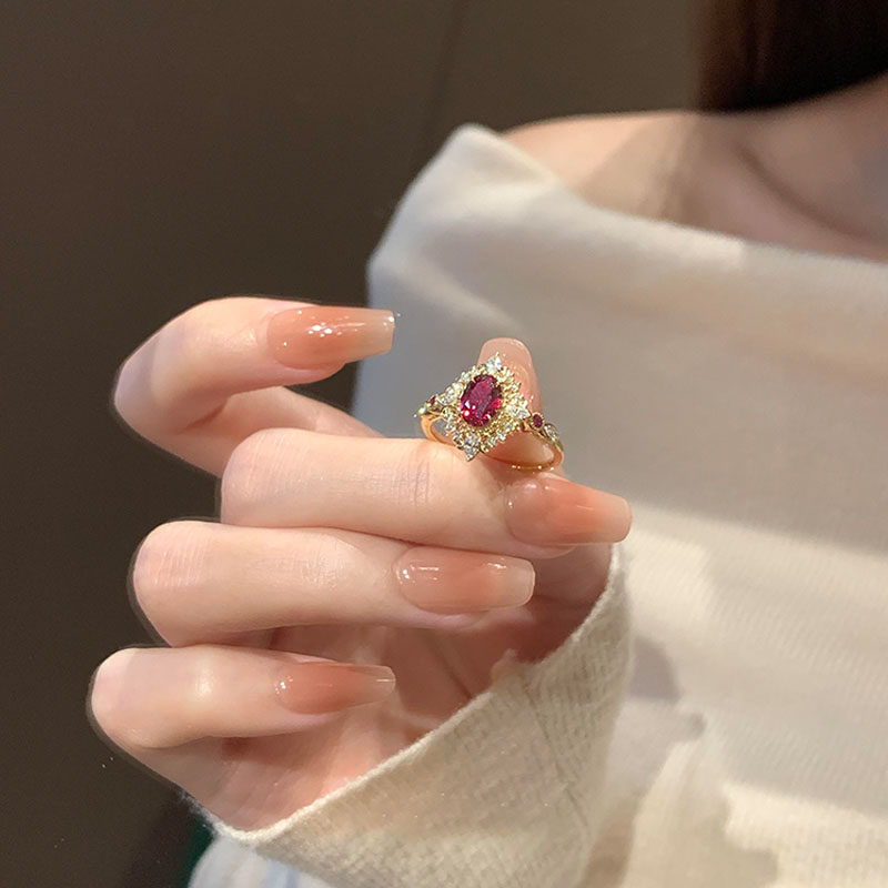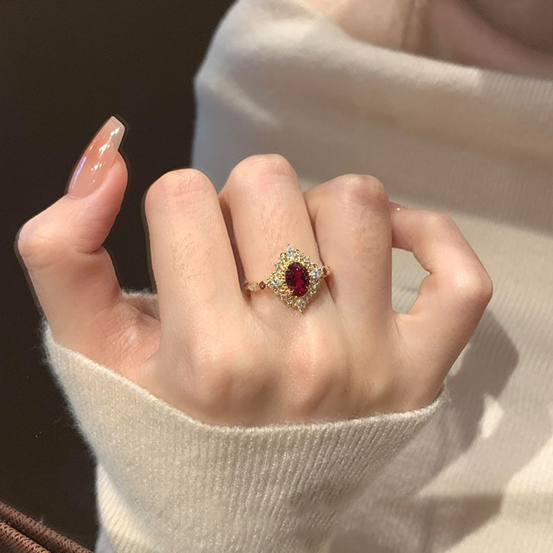 中古爆闪宫廷风红色鸽子蛋戒指女轻奢高级感食指戒小众设计感指环