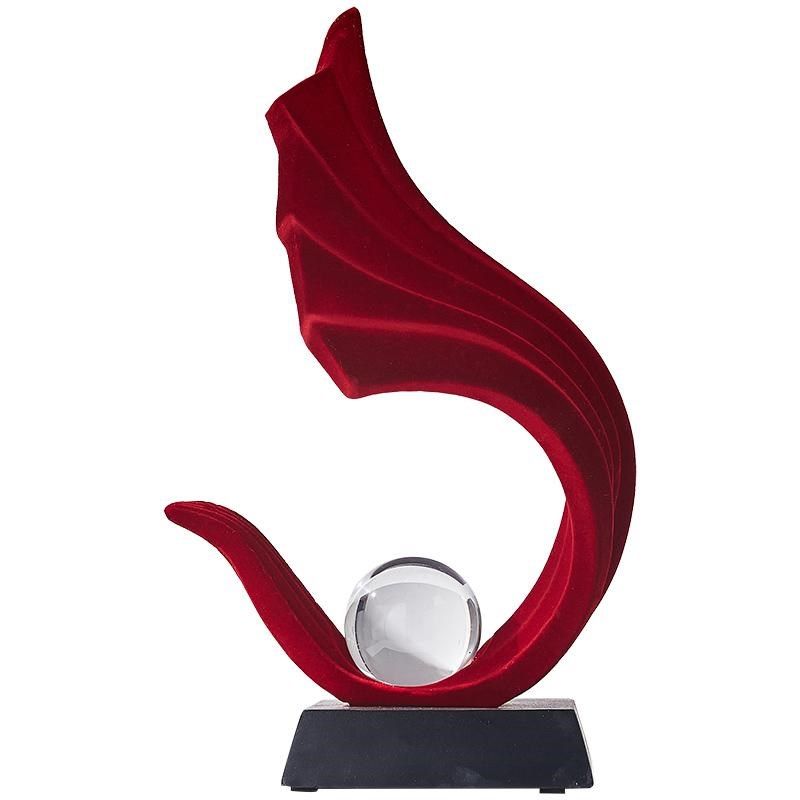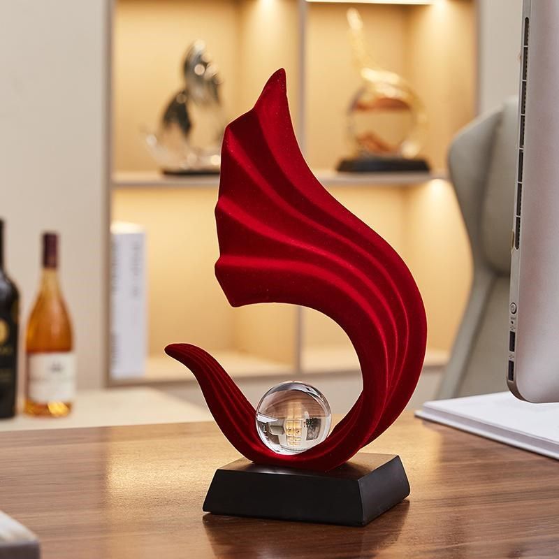 轻奢高档玄关红色风生水起摆件植绒办公I室客厅电视酒柜家居装饰