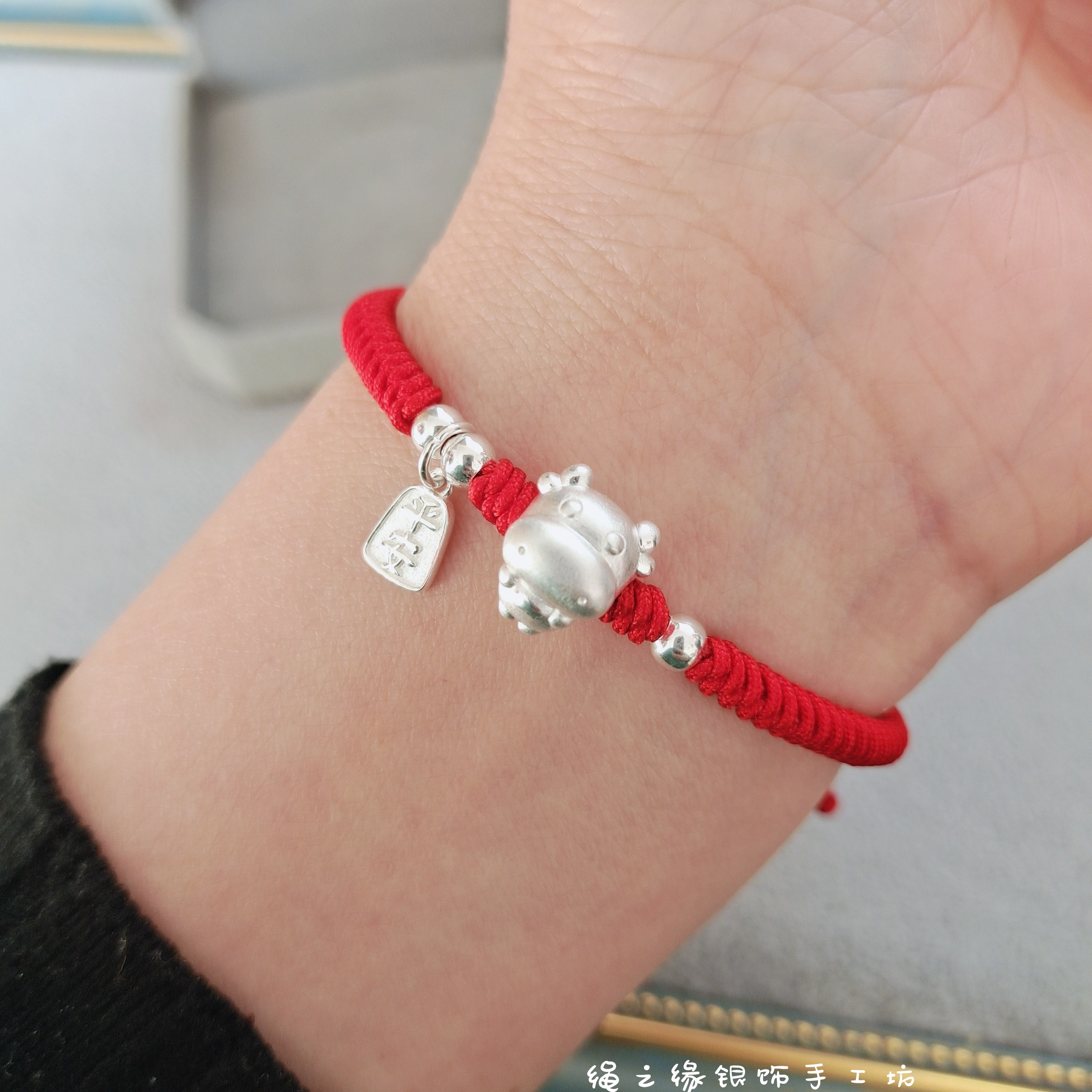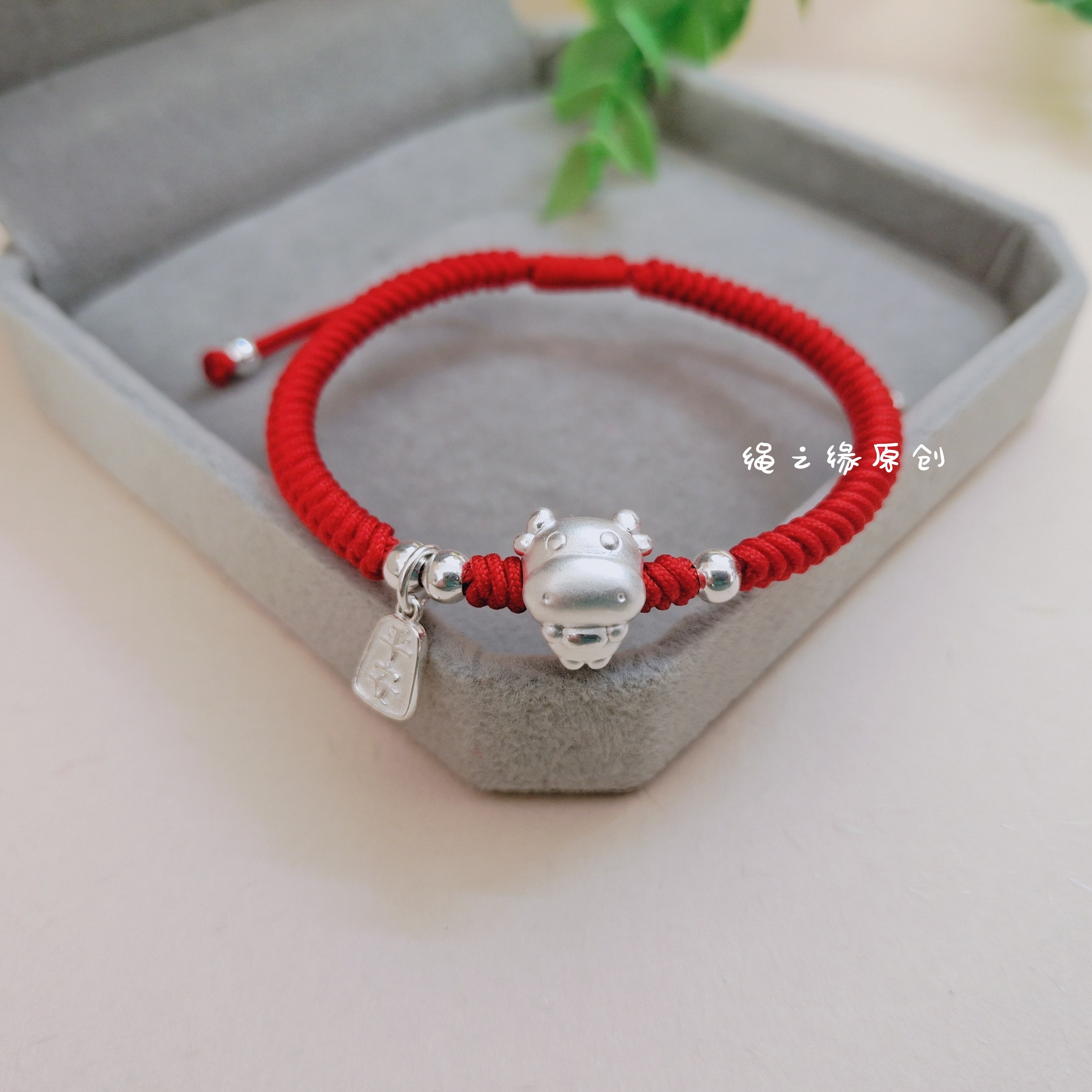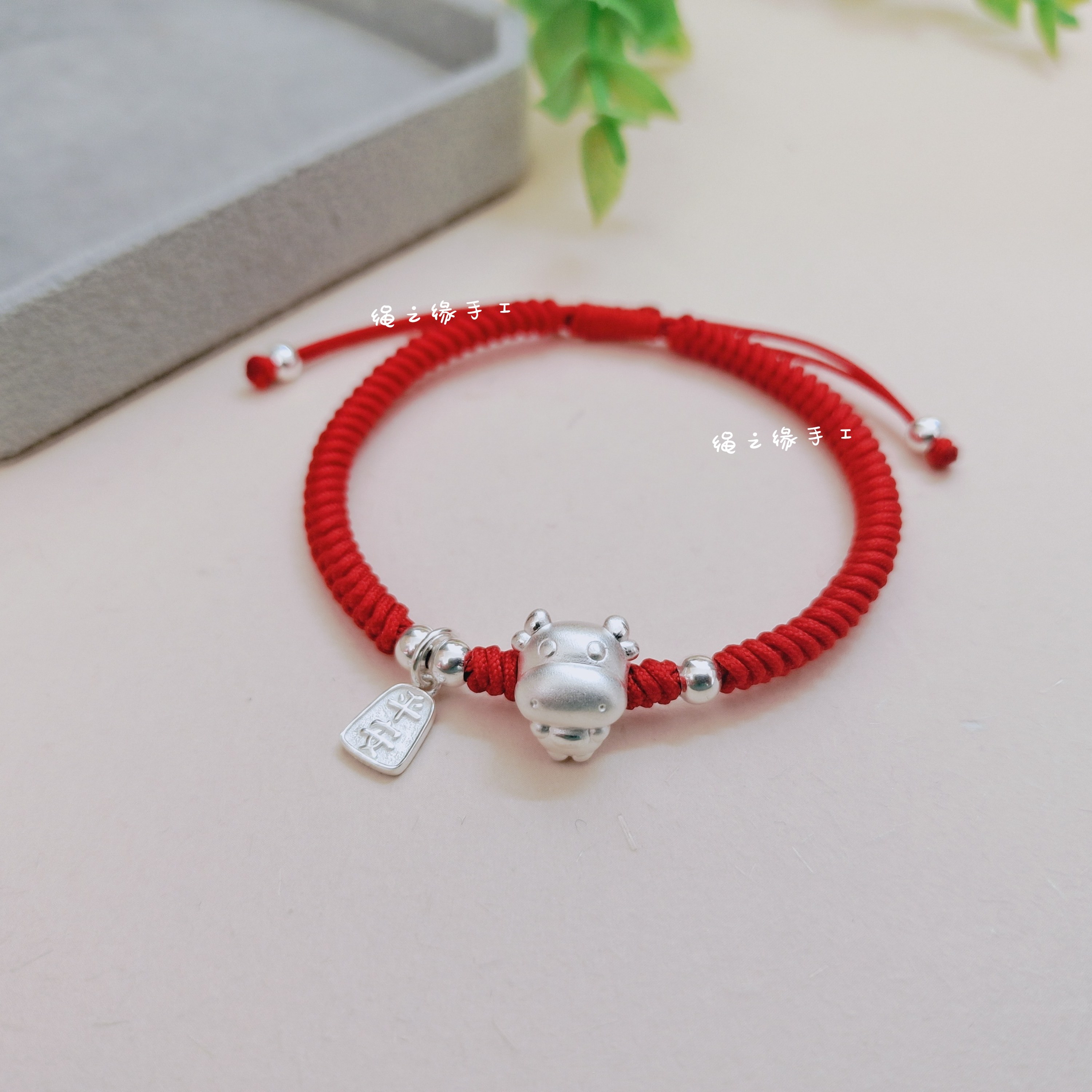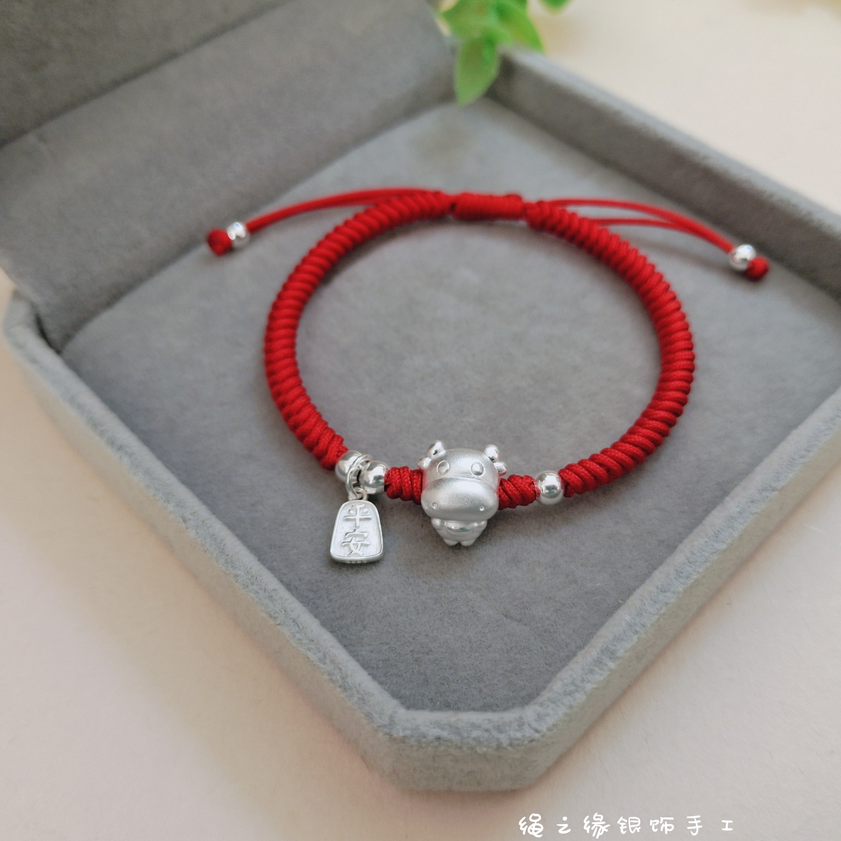 999足银平安生肖牛手编金刚结红绳手链男女通用儿童宝宝新年礼物