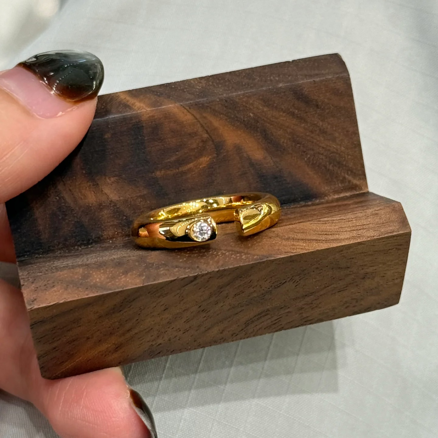当前位置:首页>商品详情>点钻亮面素圈沙金戒指仿真黄金泥鳅背简约指环轻奢开口送女友对戒