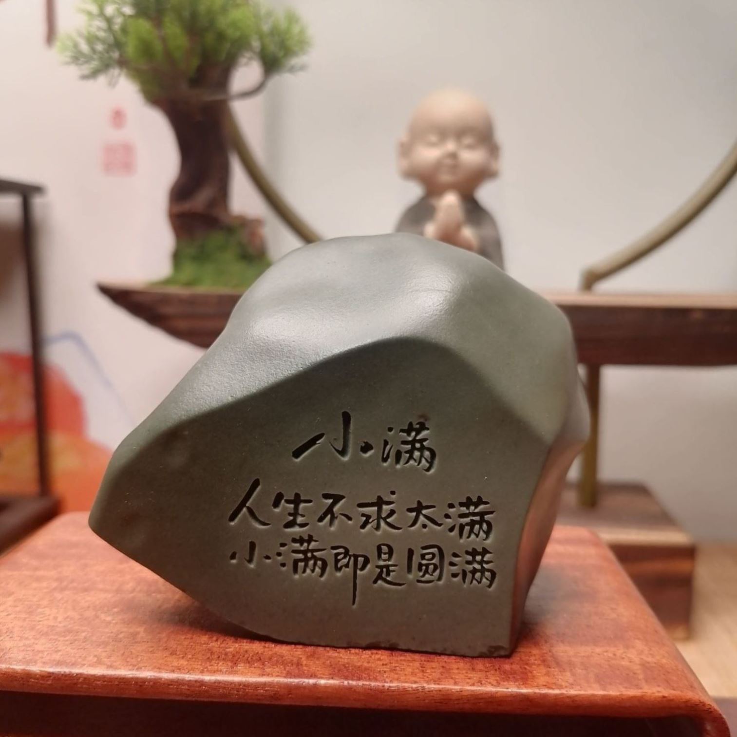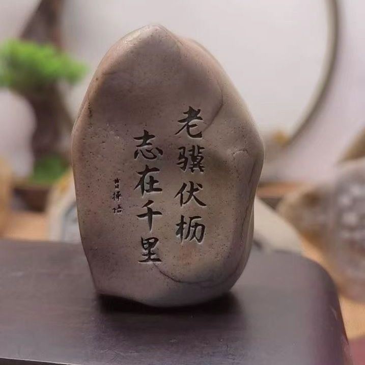 新疆泥石雕刻摆件书房办公客厅茶桌面花盆鱼缸造景刻字石头摆件茶