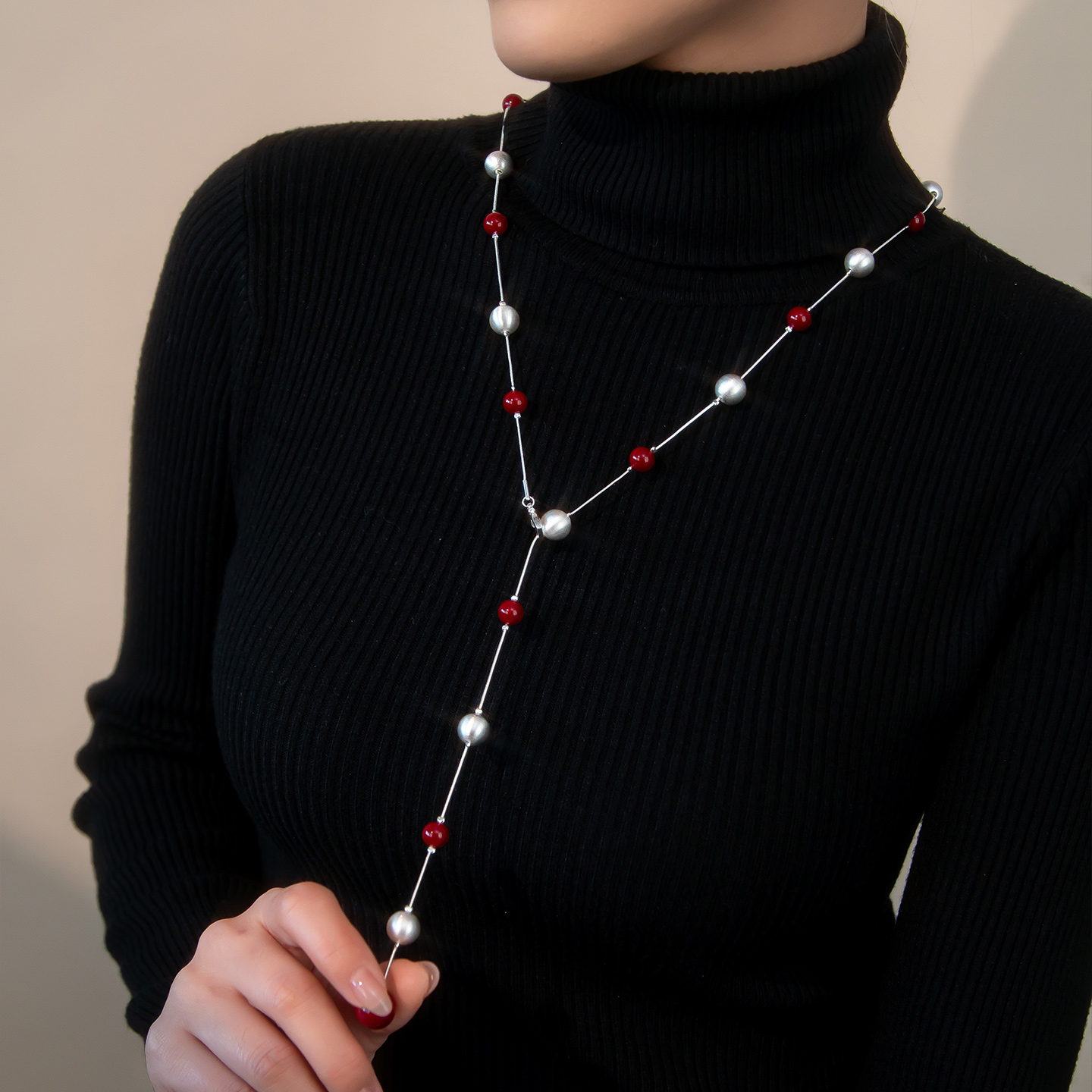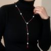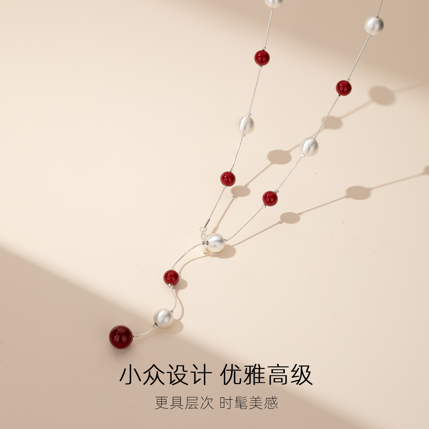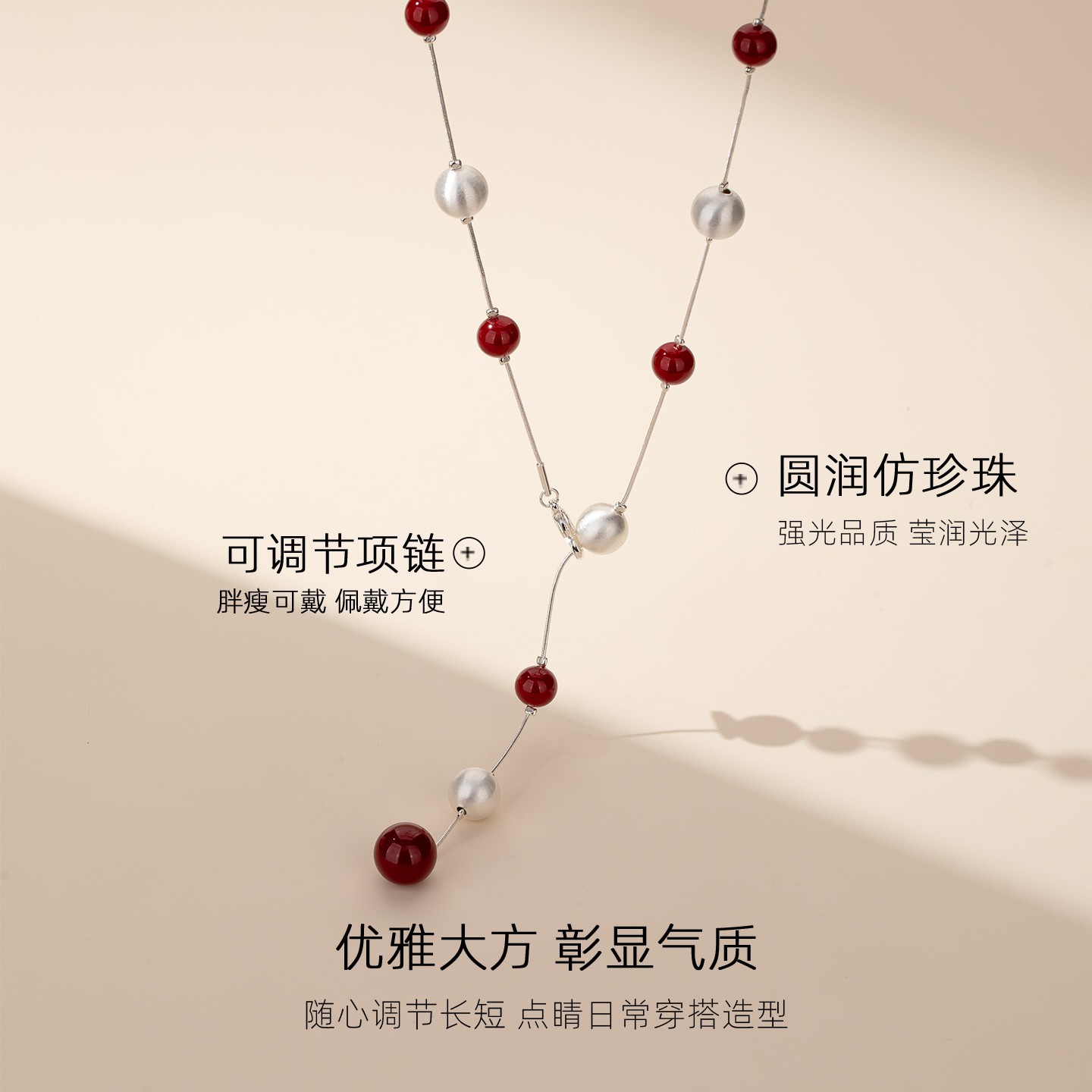 红色仿珍珠项链配饰女长款2025新款高级轻奢小众锁骨链配饰毛衣链