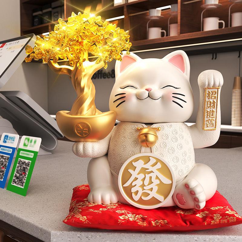 招财猫摆件自动招手店铺前台发财树送朋友开业礼品乔迁之新居礼物