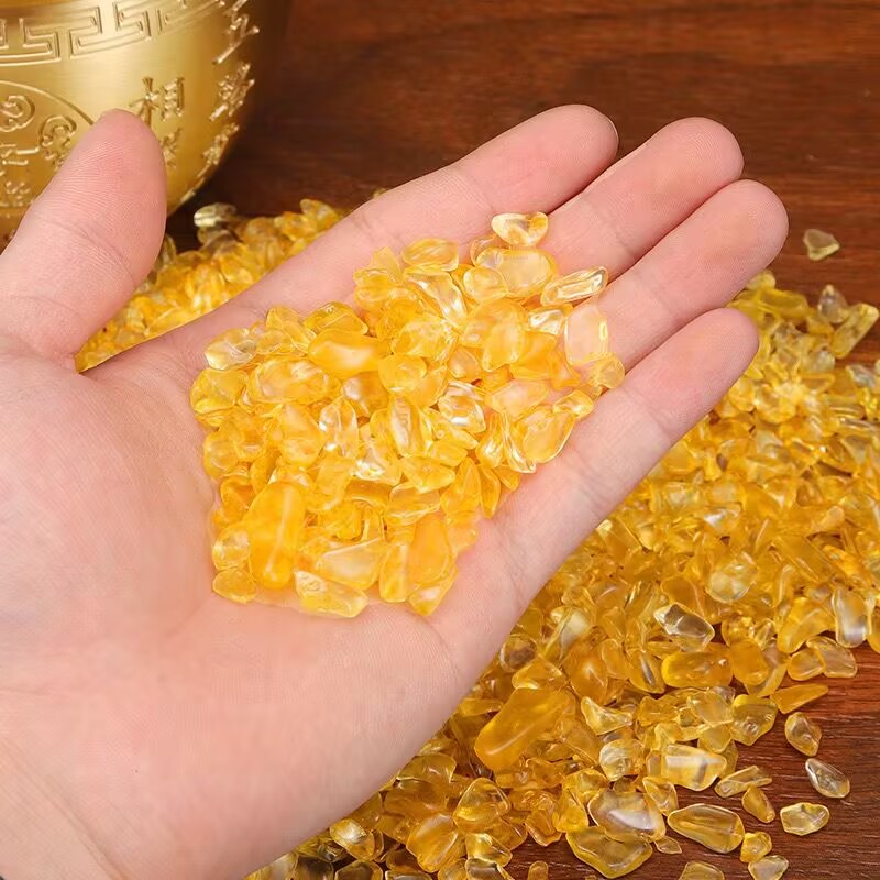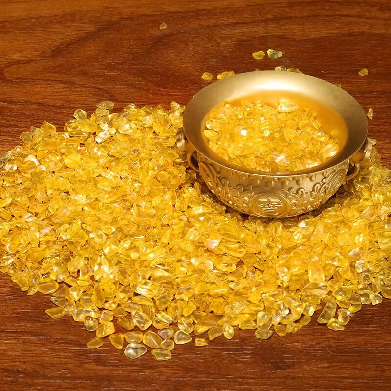 黄水晶碎石摆件家居客厅桌面装饰品乔迁开业礼品聚宝盆铜米缸配件