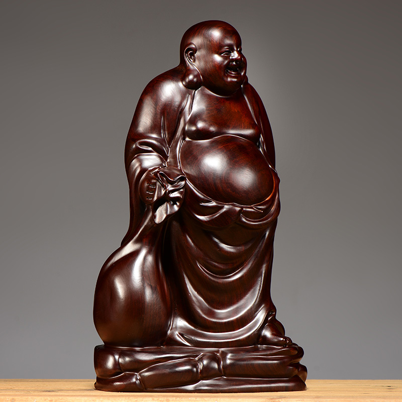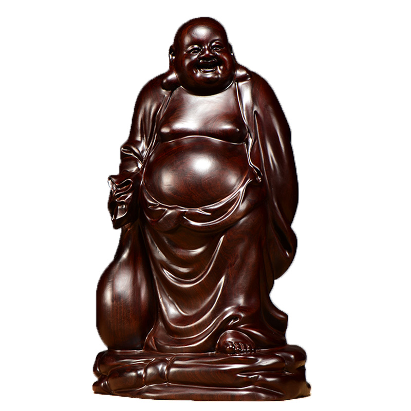 黑檀实木雕刻大号布袋大肚弥勒笑佛像摆件家居客厅装饰红木工艺品