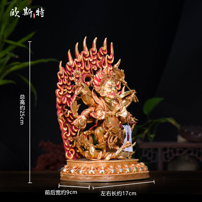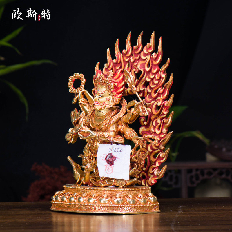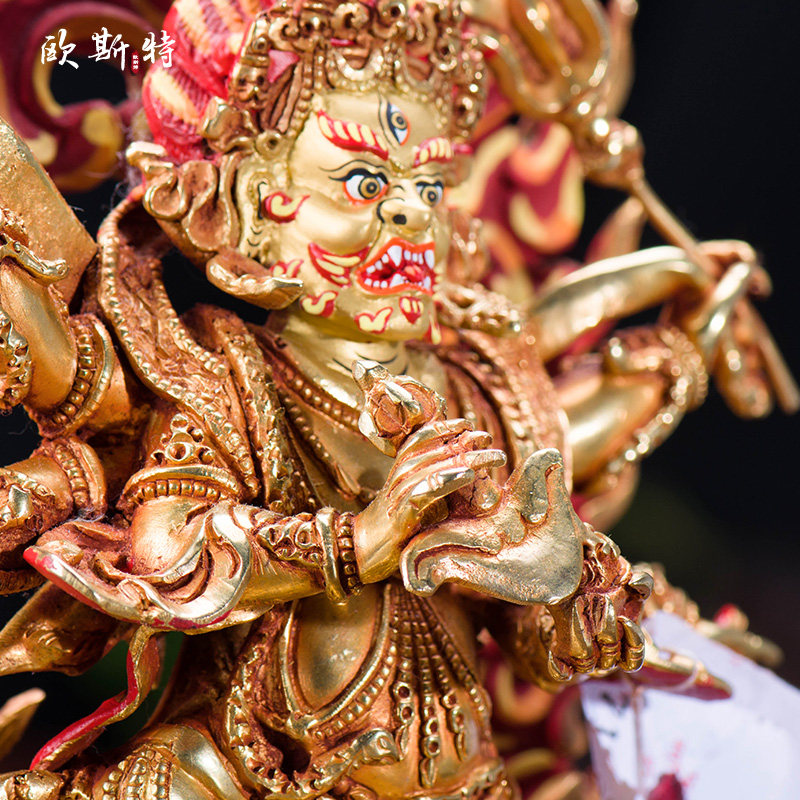 欧斯特 尼泊尔 7寸铜全鎏金 六臂玛哈嘎啦铜像家居客厅玄关像摆件