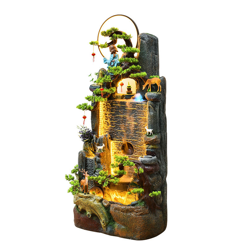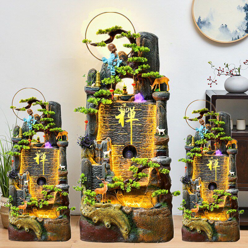 风水流水摆件循环水新中式假山喷泉水景鱼缸客厅落地装饰玄关造景