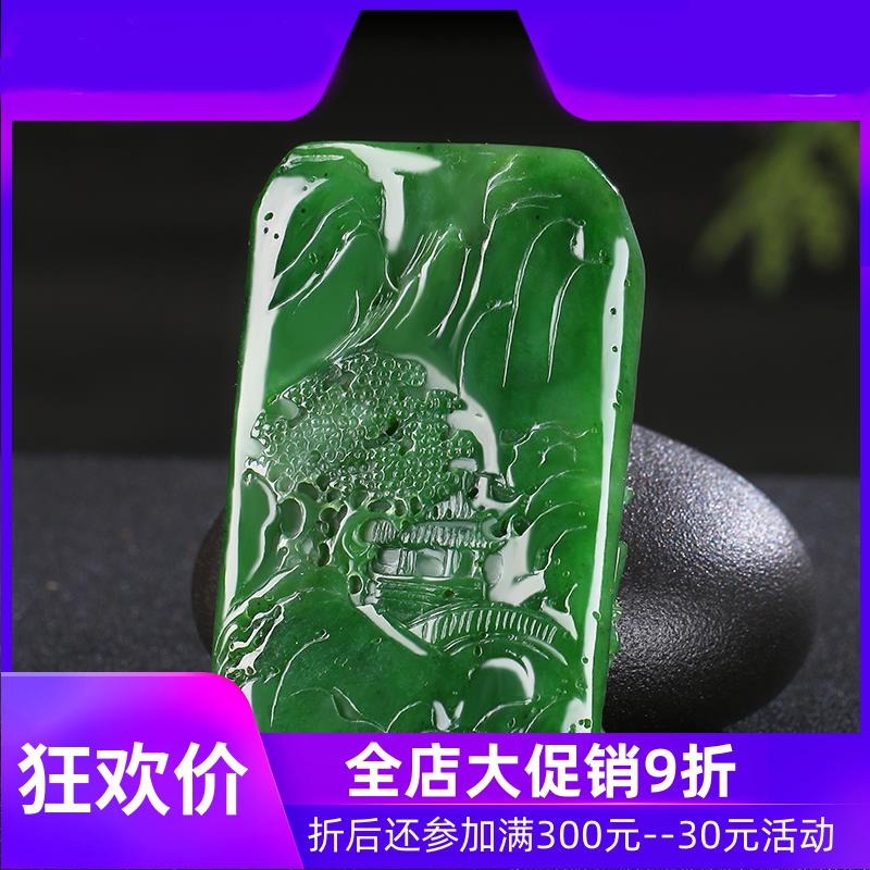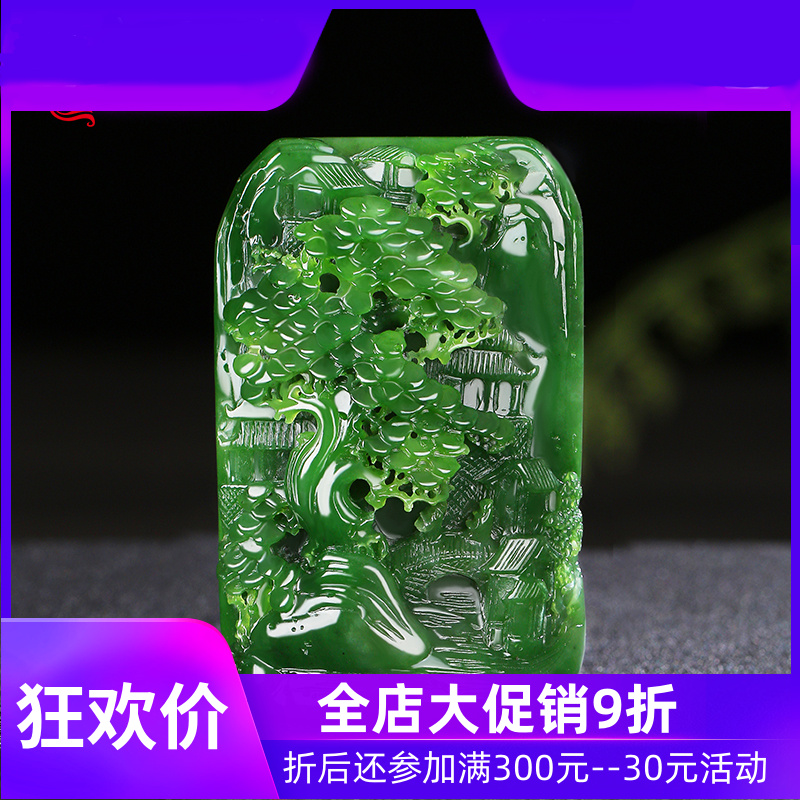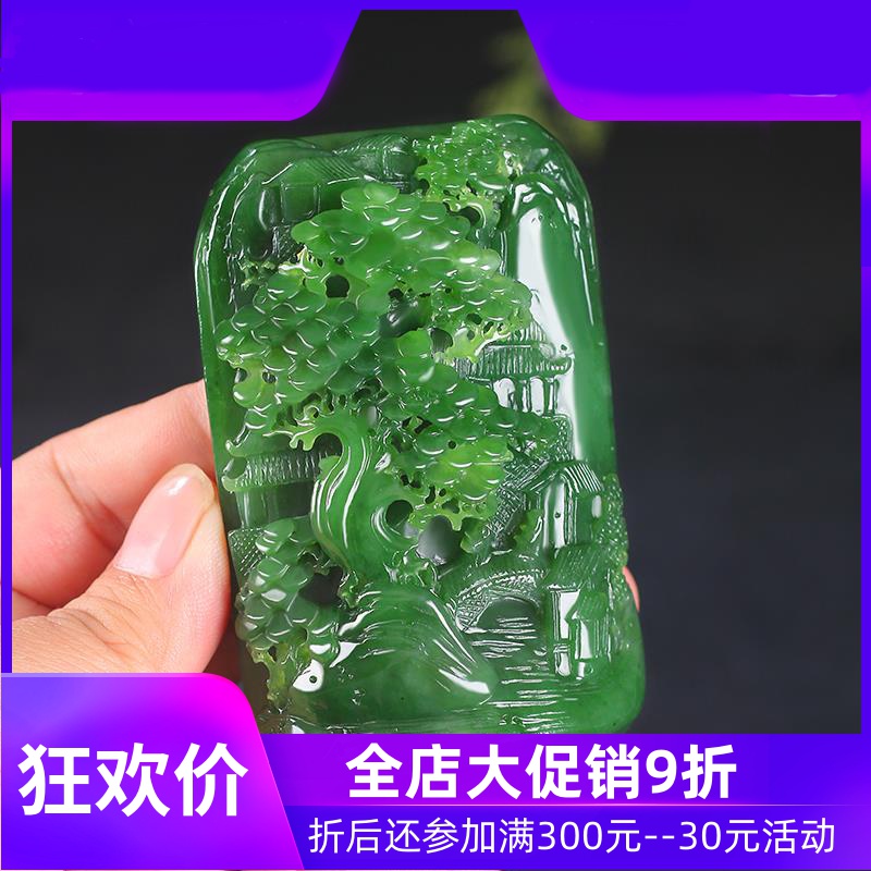 和田玉碧玉山水牌吊坠男松树挂件精雕人物意境牌手把件送礼mzr