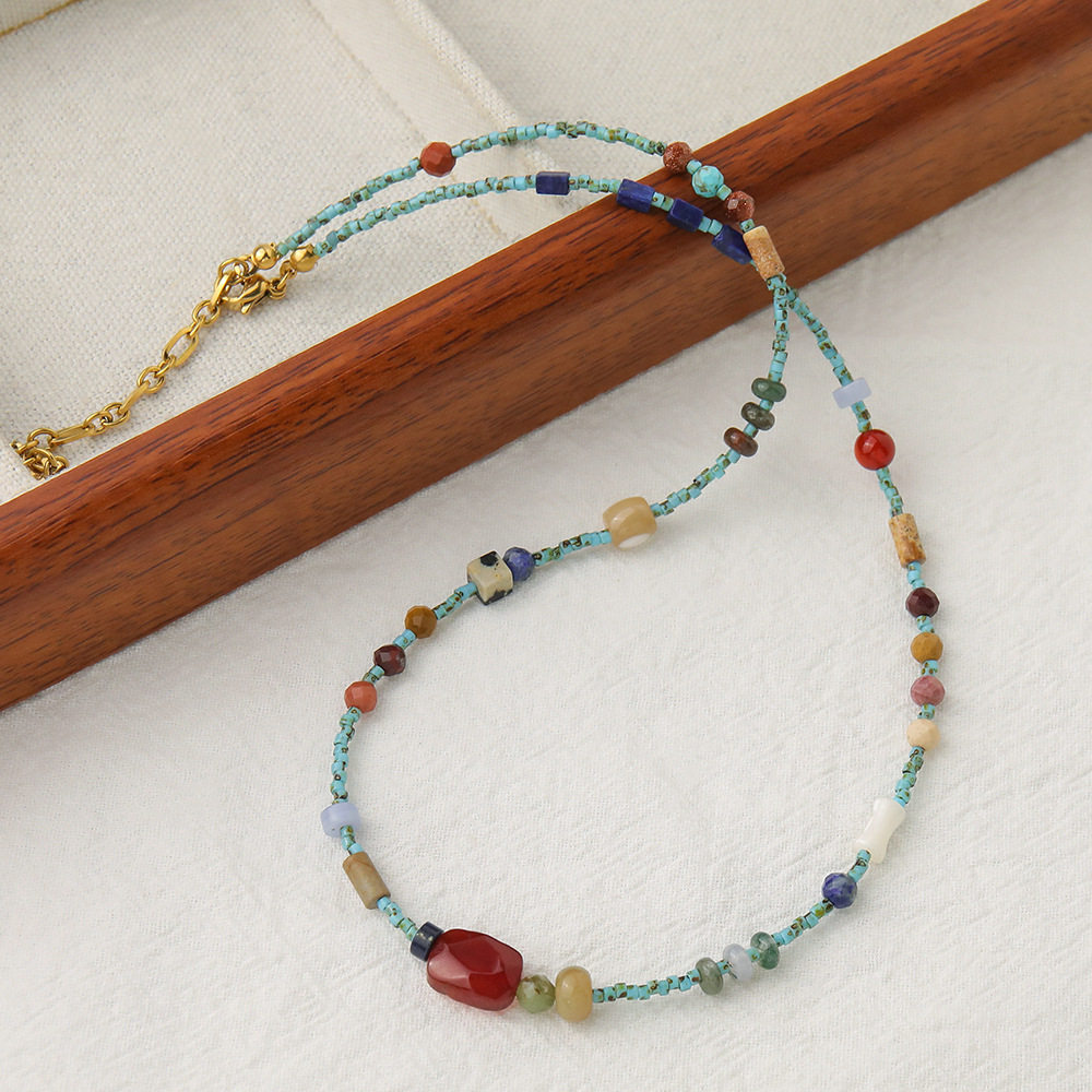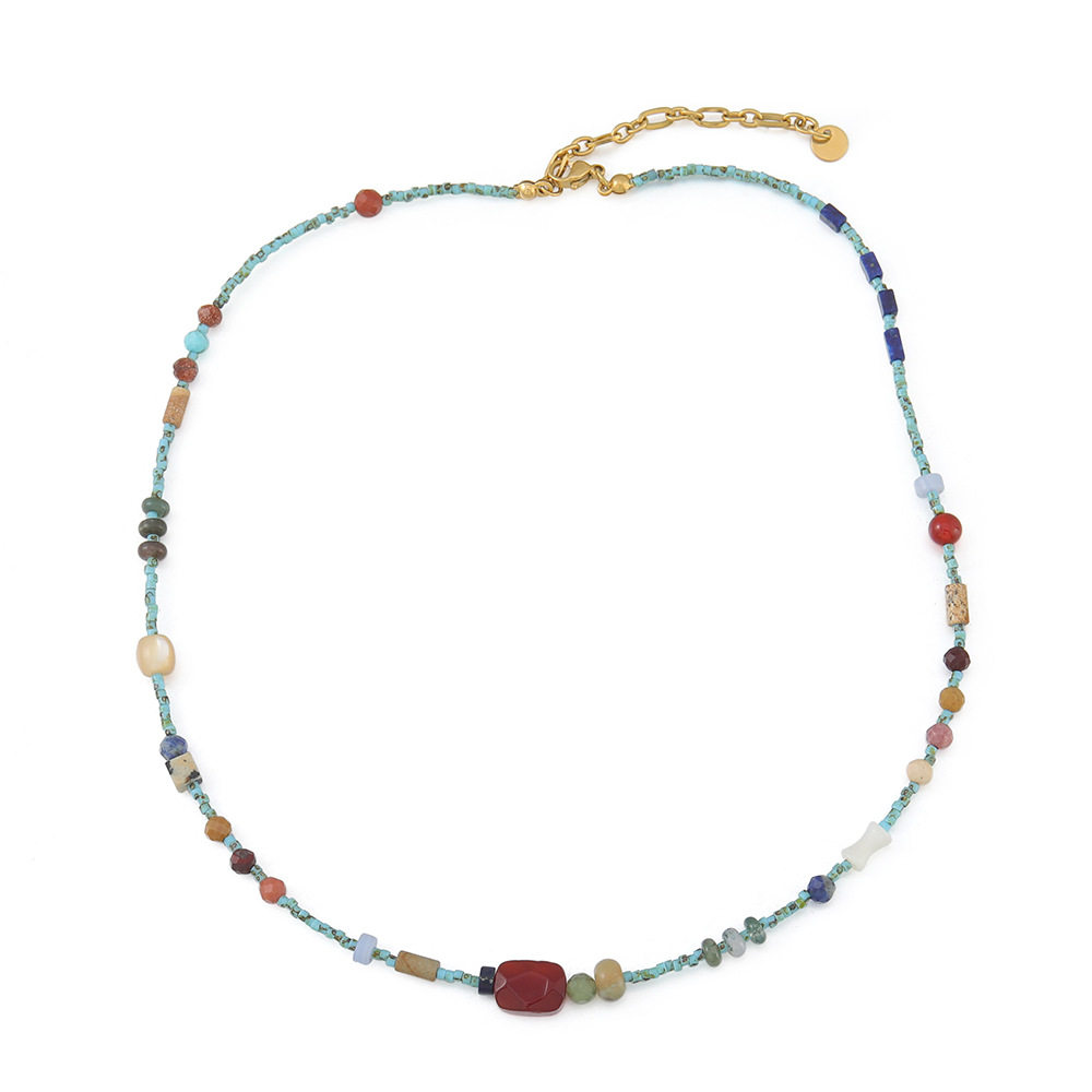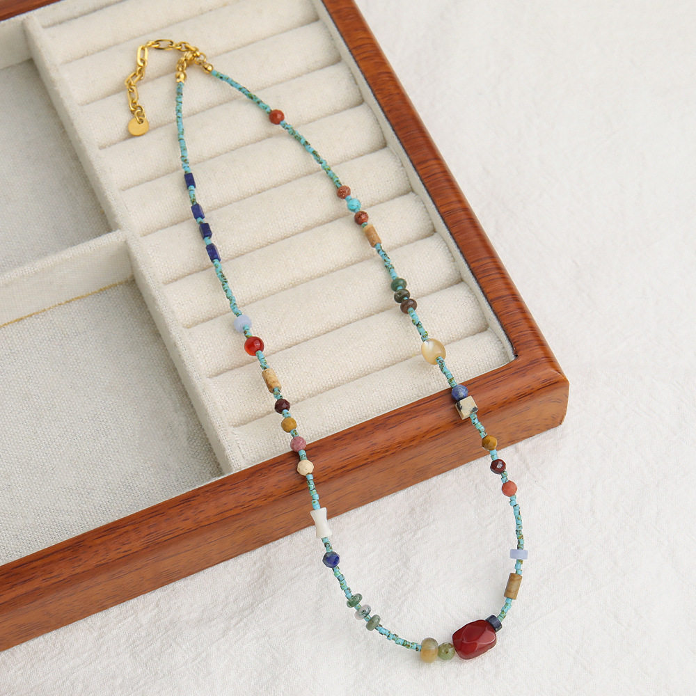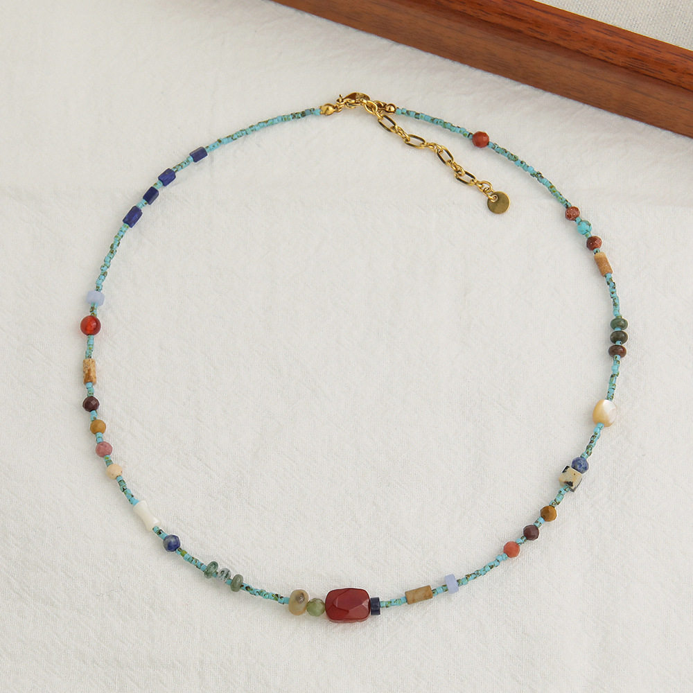 新中式绿松石红玛瑙玛瑙点缀串珠项链气质女高级蓝色锁骨链
