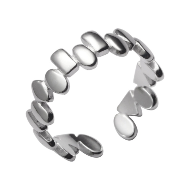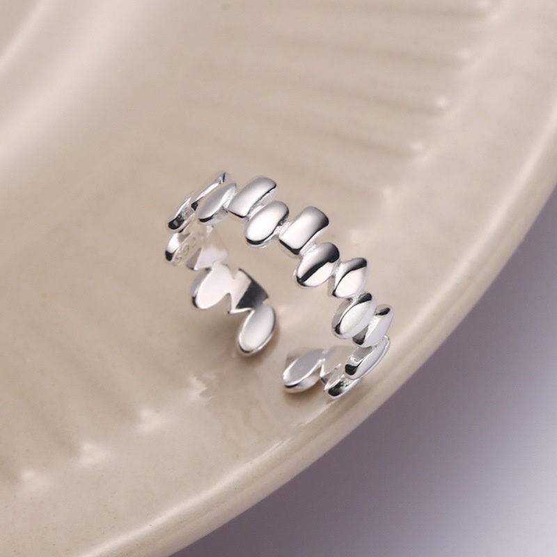 美汝仙 通体纯银水滴阶梯戒指开口设计精致亮银色食指指环女轻奢