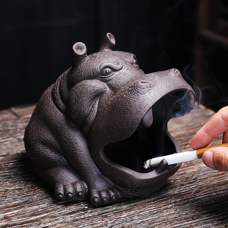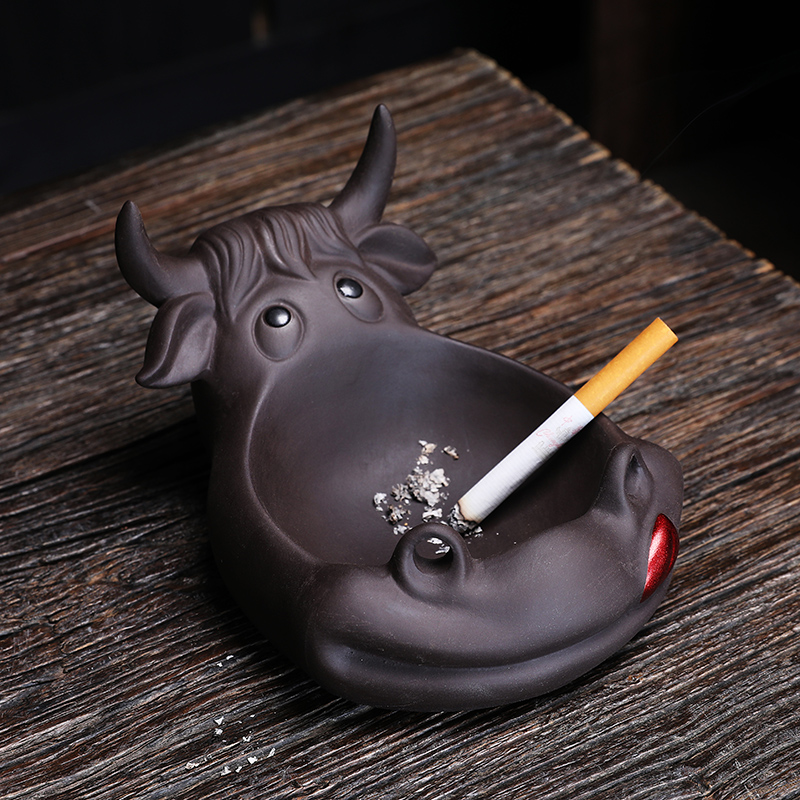 复古创意紫砂烟灰缸个性卡通动物收纳摆件家用办公室酒店客厅烟缸