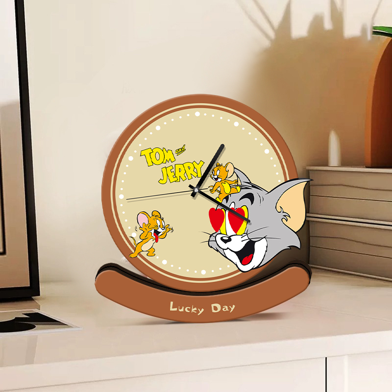 速发猫和老鼠座钟摆台式客厅钟表创意摇摆钟可爱桌面静音时钟摆件