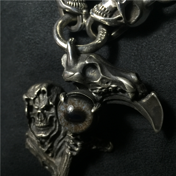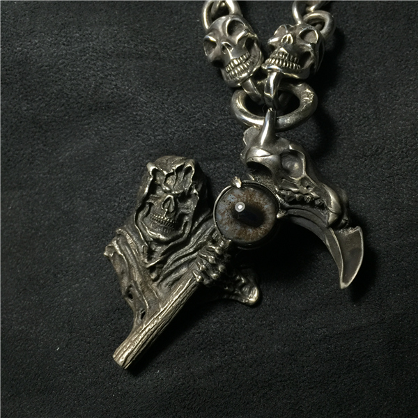 渡鸦工作室原创专属设计 末日镰刀死神吊坠925纯银饰手工镶嵌雕刻