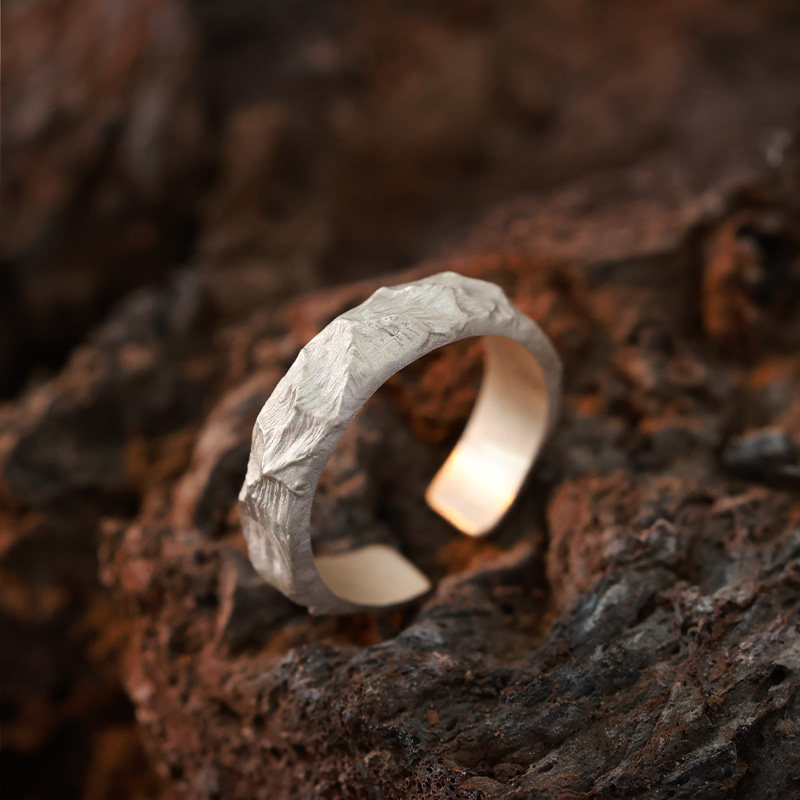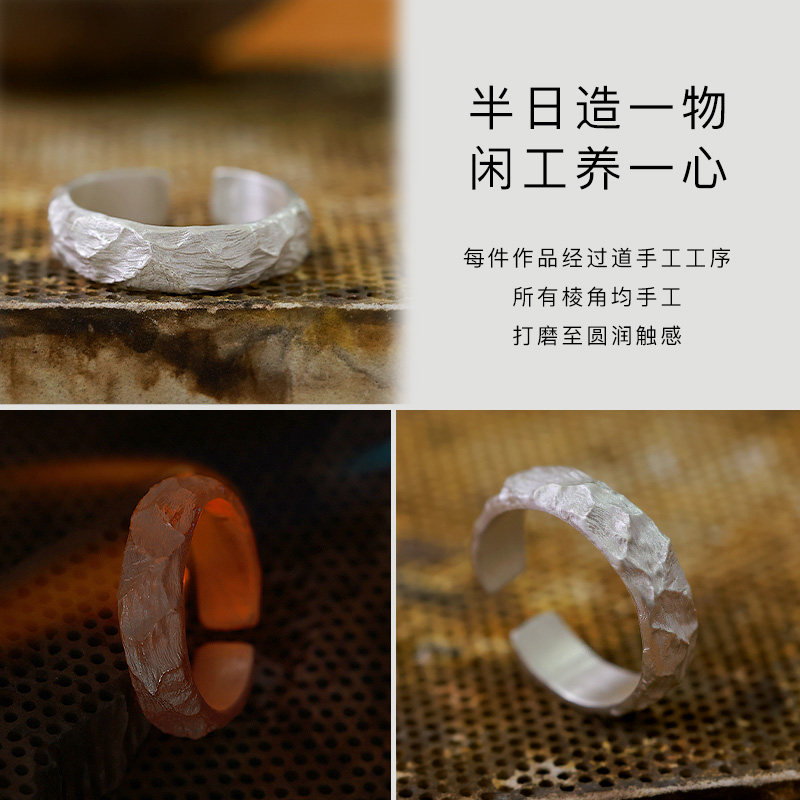 闲工造物《寻山》999足银戒指男女 手工原创国风山指环可调节