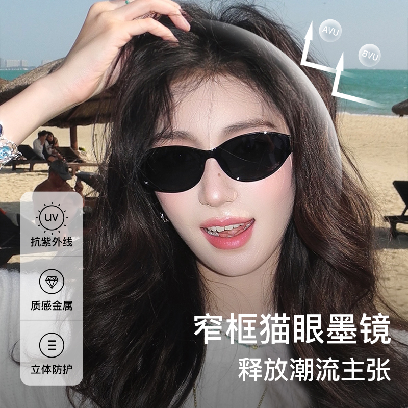 CAPONI窄框猫眼墨镜女2025新款高级感UV420防晒防紫外线太阳眼镜