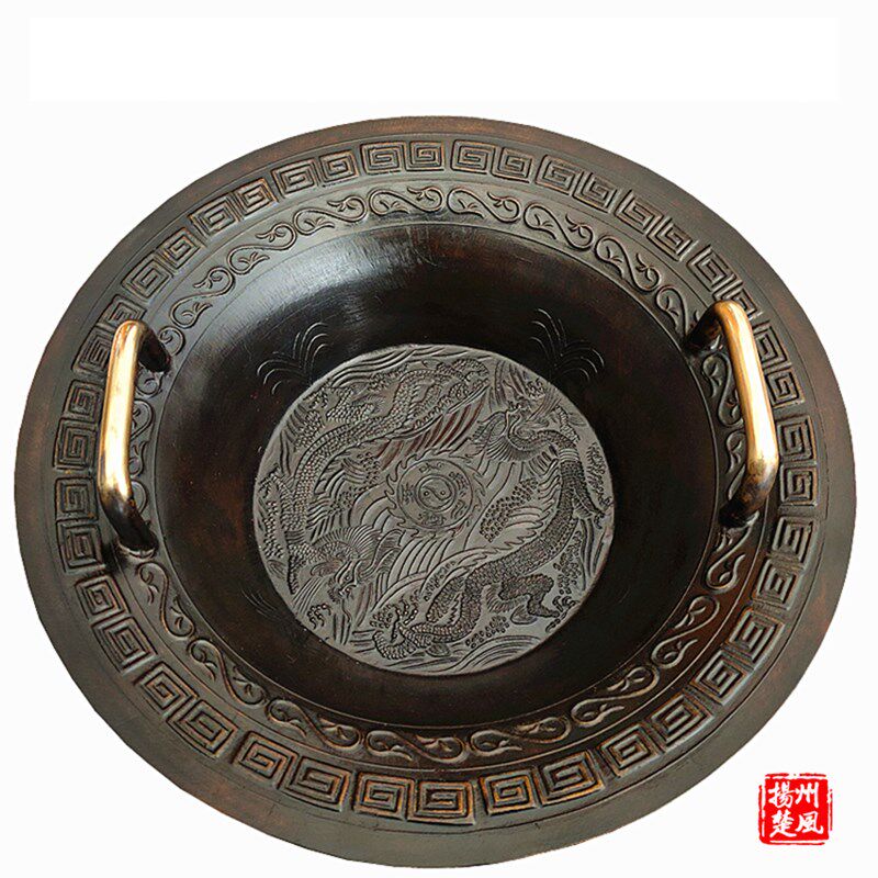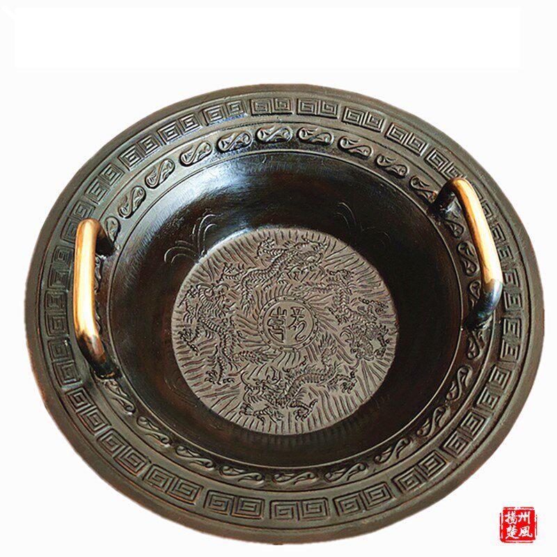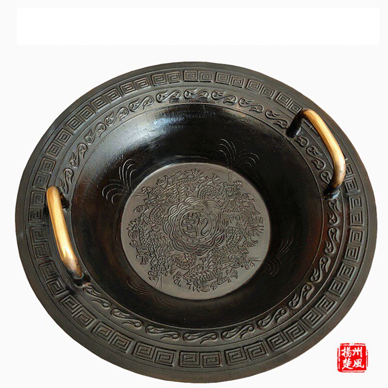仿古青铜器摆件龙洗铜盆黄铜鱼洗全包浆共振盆跳水盆搓水盆喷水振