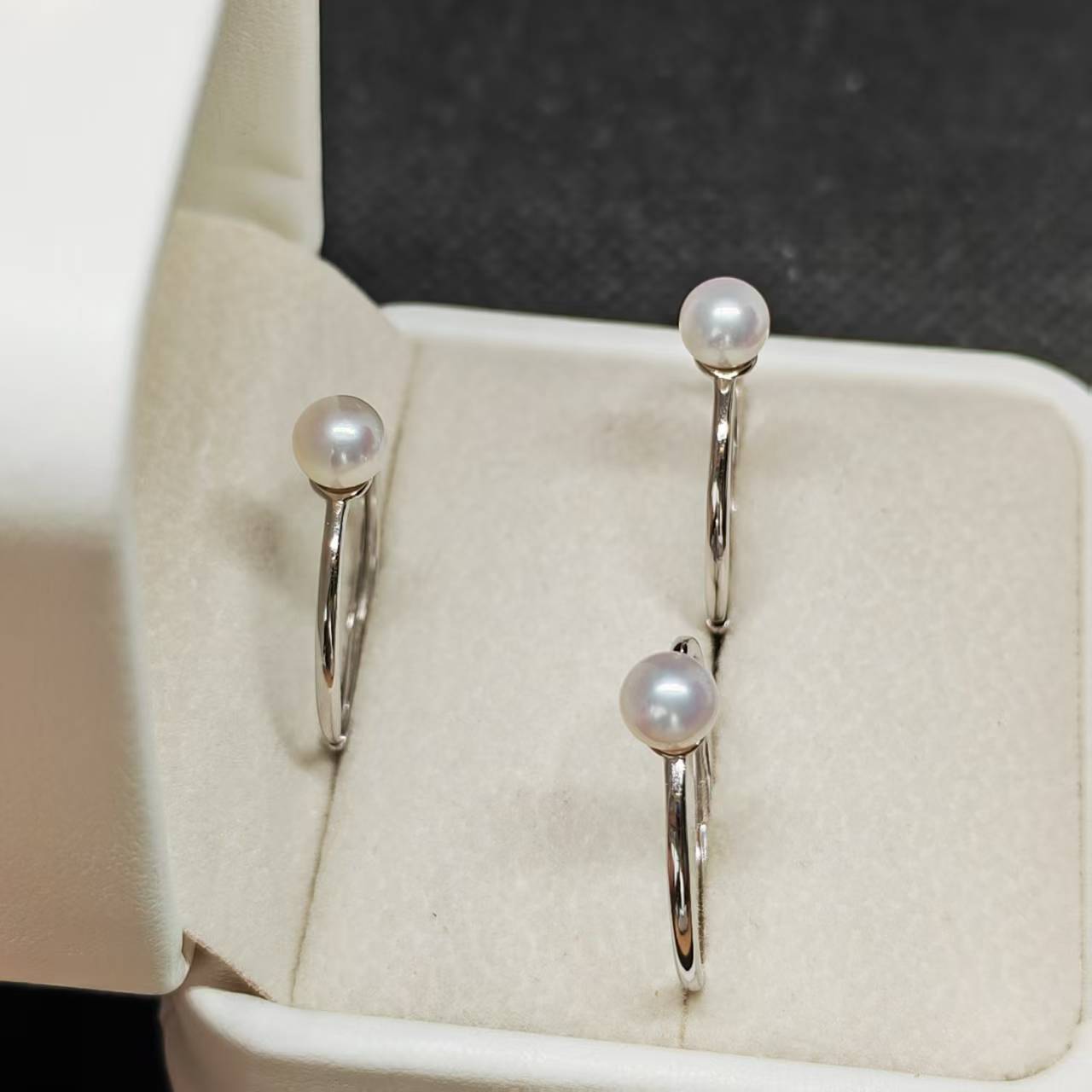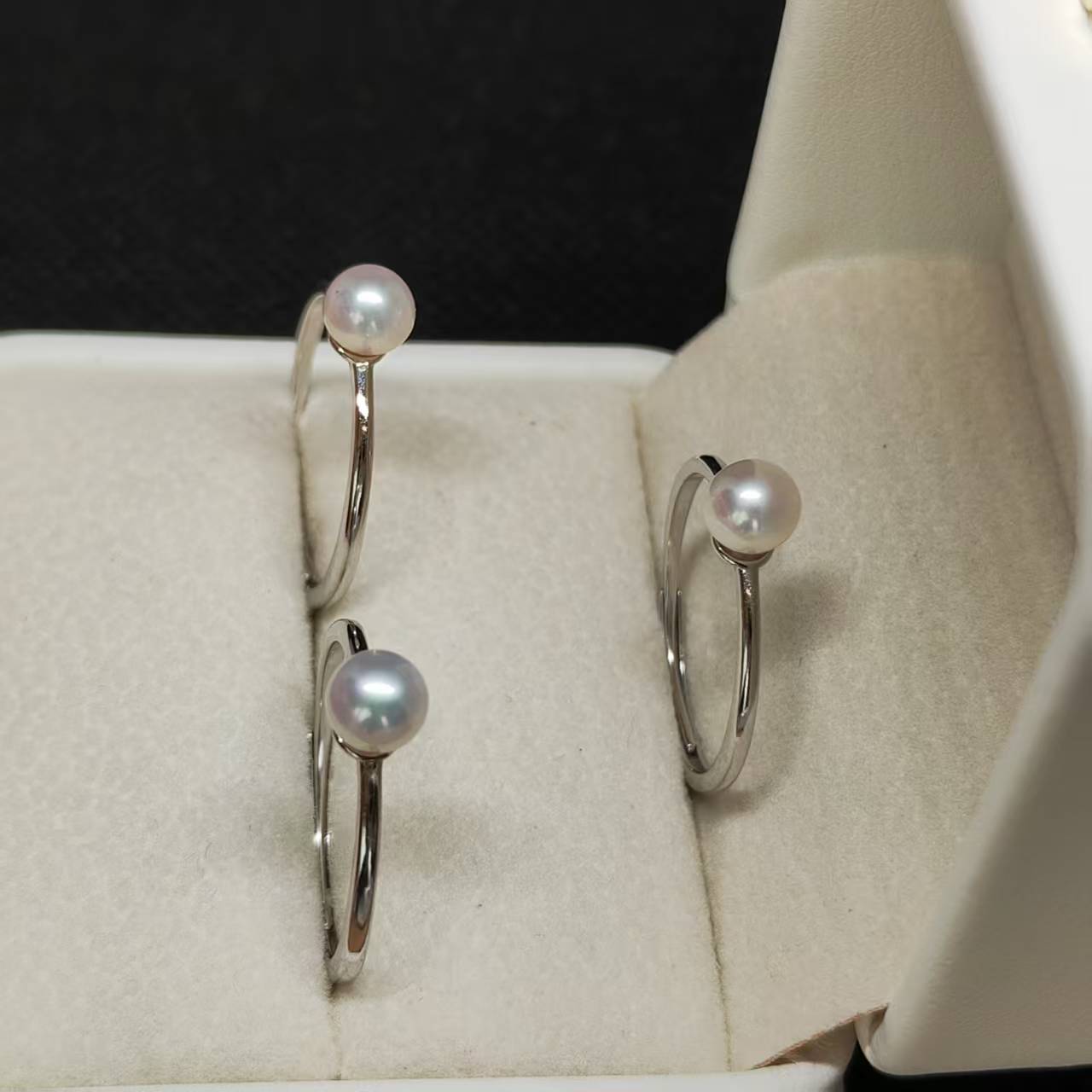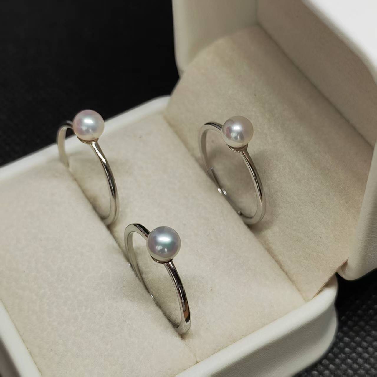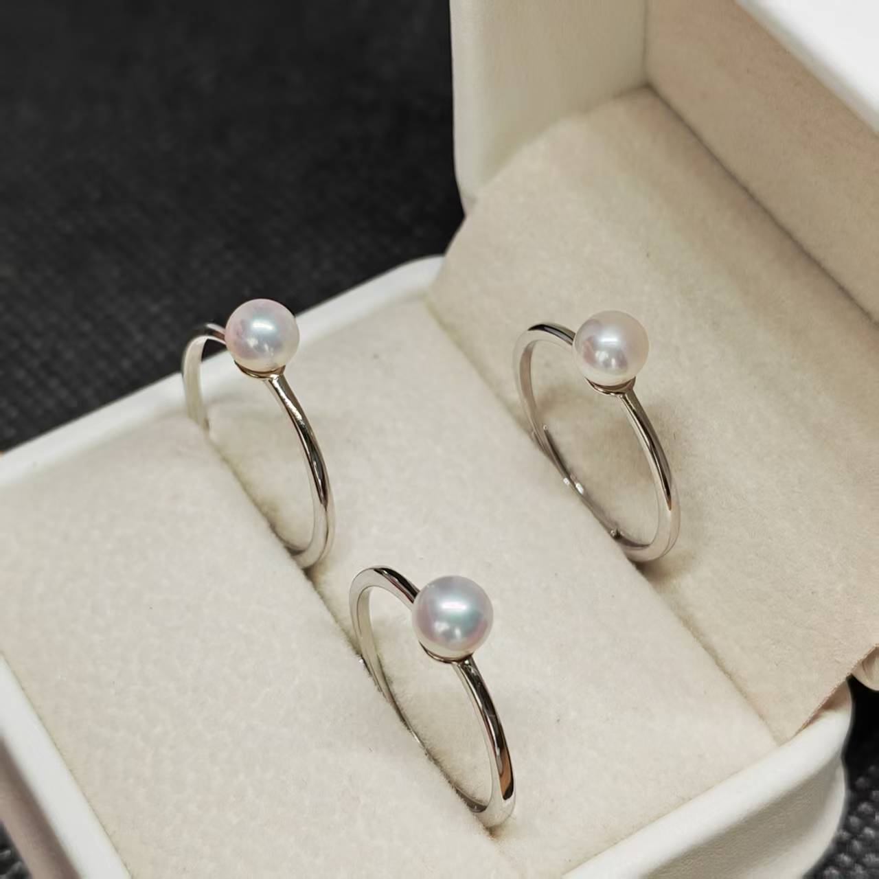 天然淡水真珍珠5mm+戒指正圆素圈极光镜面纯银开口戒近无瑕精致礼