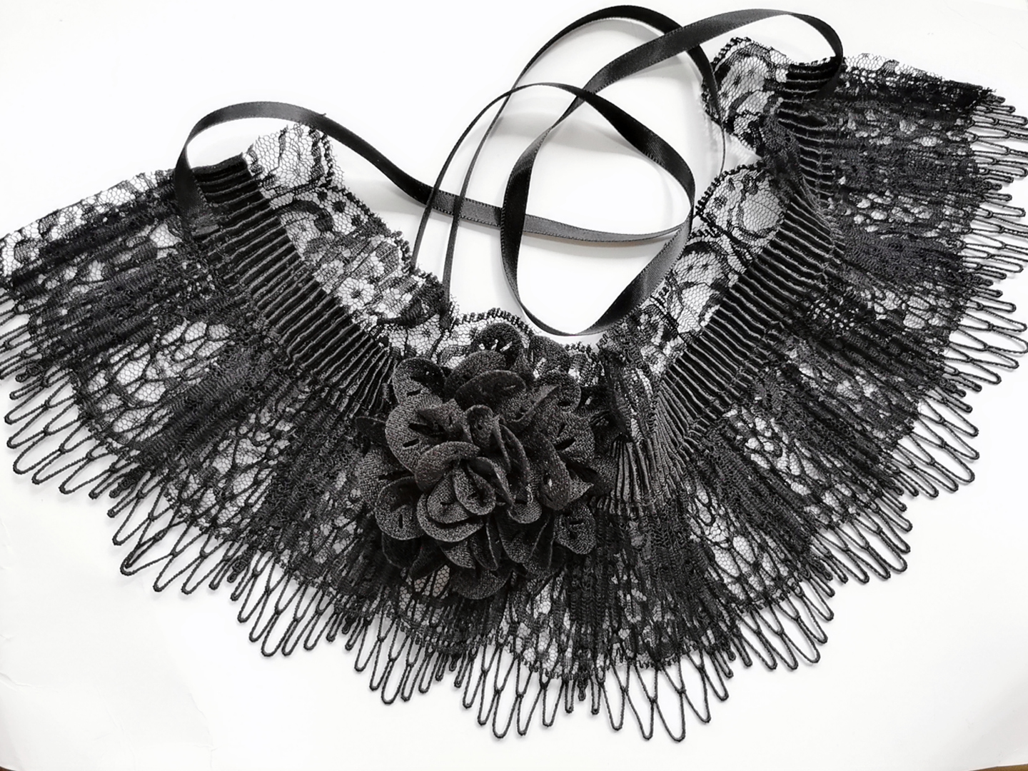 包邮网红女新秋冬百搭领子多层围巾颈链蕾丝花朵白色褶皱波浪绑带