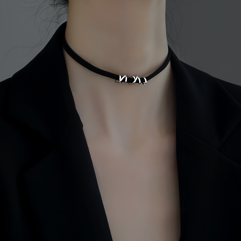 纯银黑色choker项圈锁骨链项链女2025新款爆款脖颈链颈带脖子饰品