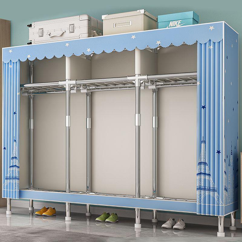 简易衣柜家用卧室组装布衣柜全钢架加粗加固出租房用收纳柜挂衣橱
