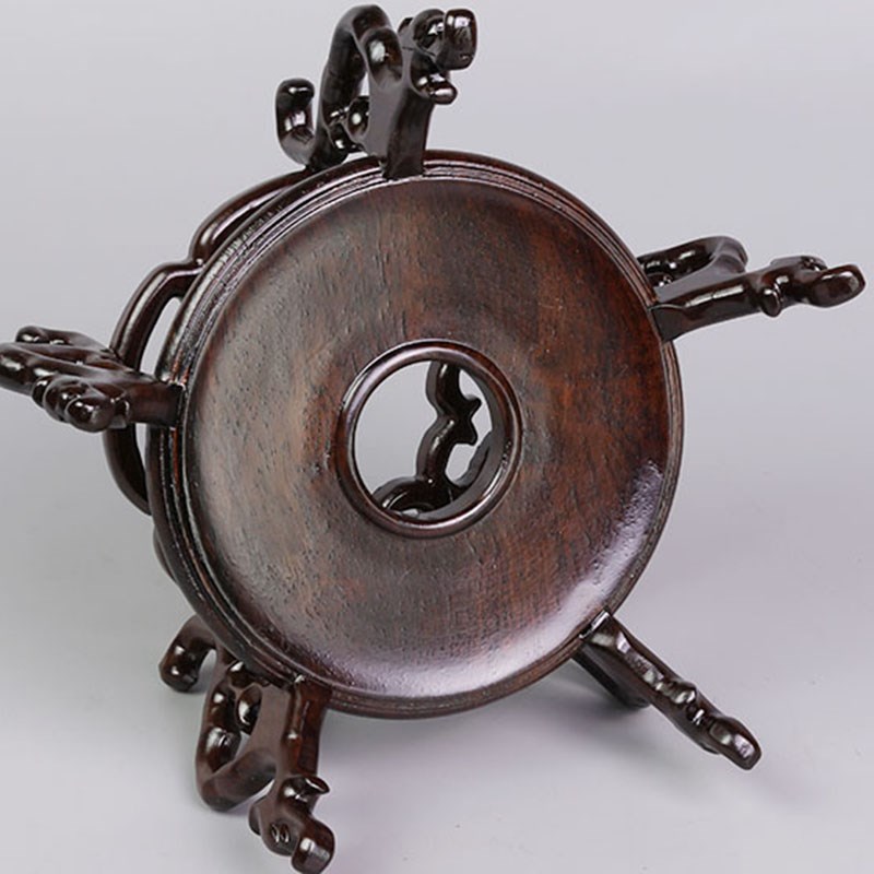 鱼缸架实木底座摆件球形木头瓷瓶酒缸木质圆形盆景红木质文玩木托