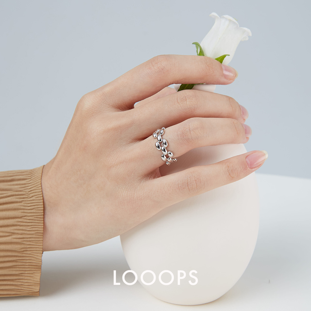 LOOOPS官方店 VERY CLOSE系列橄榄925银金属连珠原创设计小众戒指