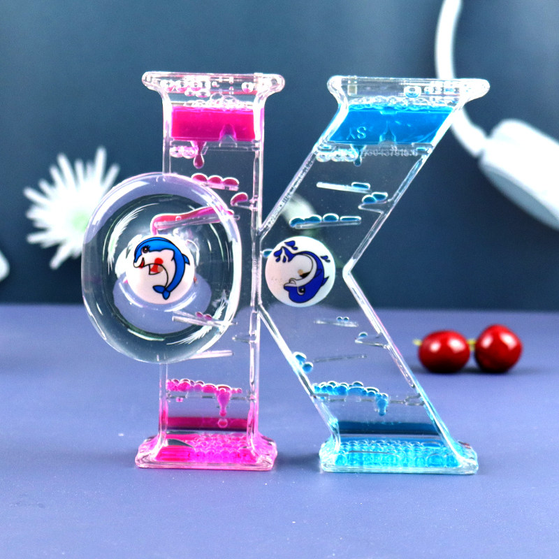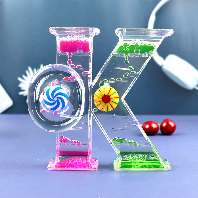 创意OK形状双彩色油滴沙漏摆件动感旋转涡轮计时器儿童节生日礼物