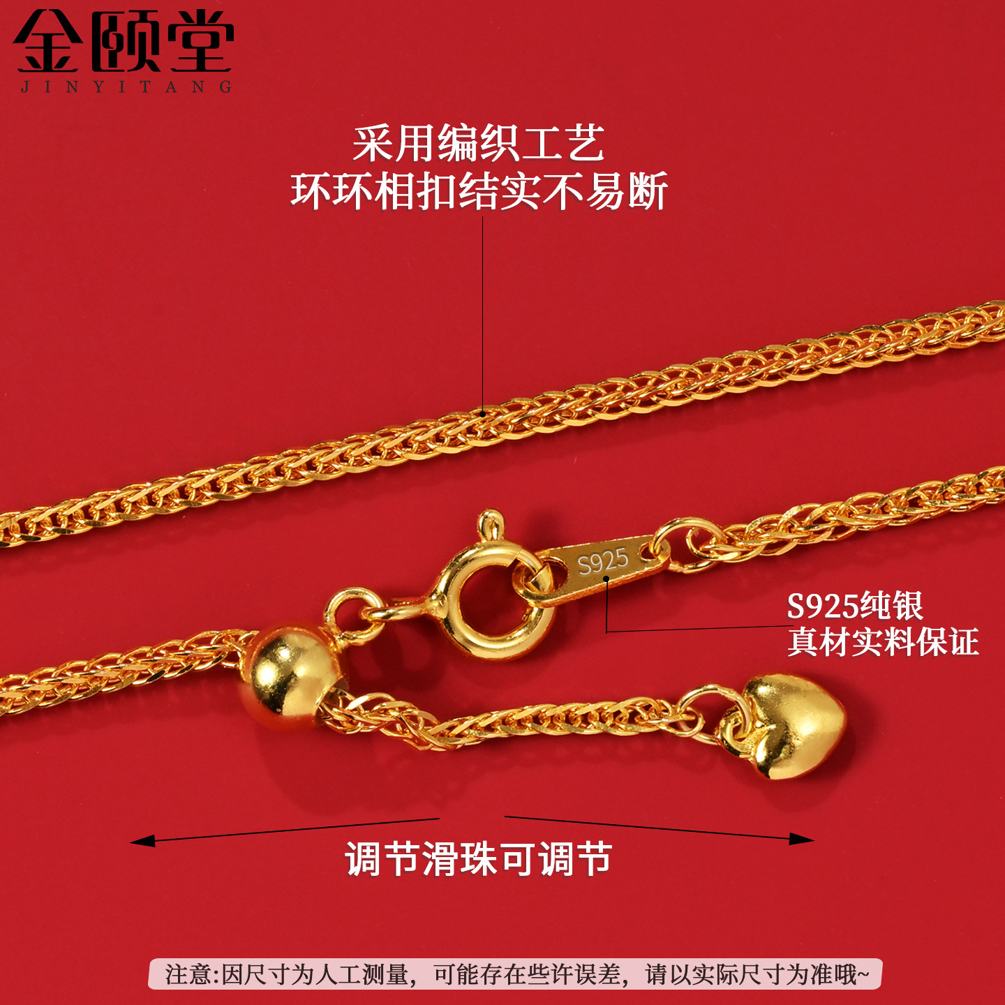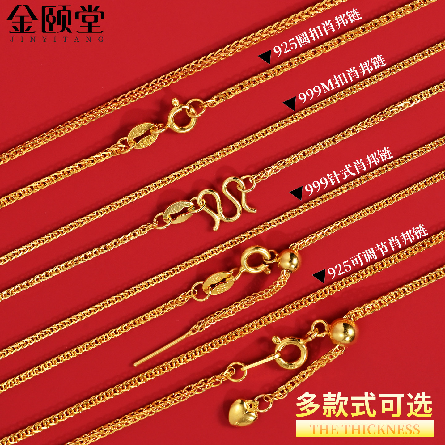 肖邦链纯银999项链女镀18k金黄色S925穿珠针式万能链可调节diy男