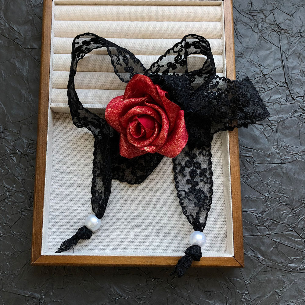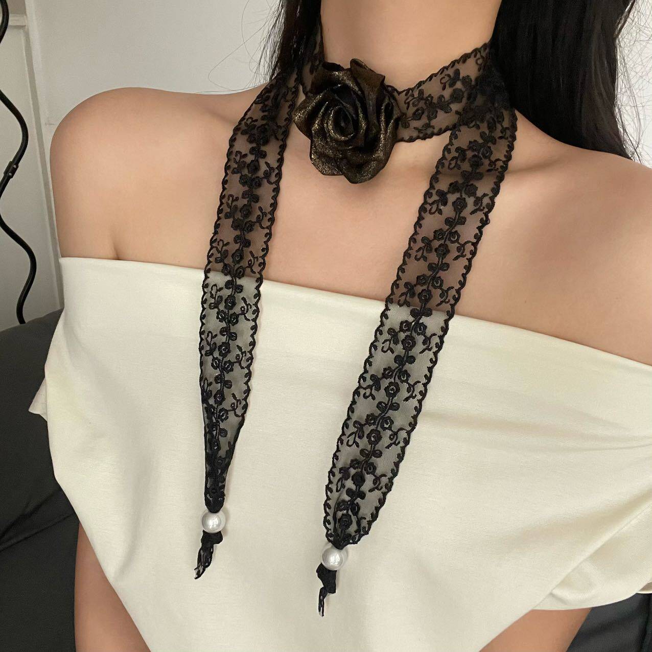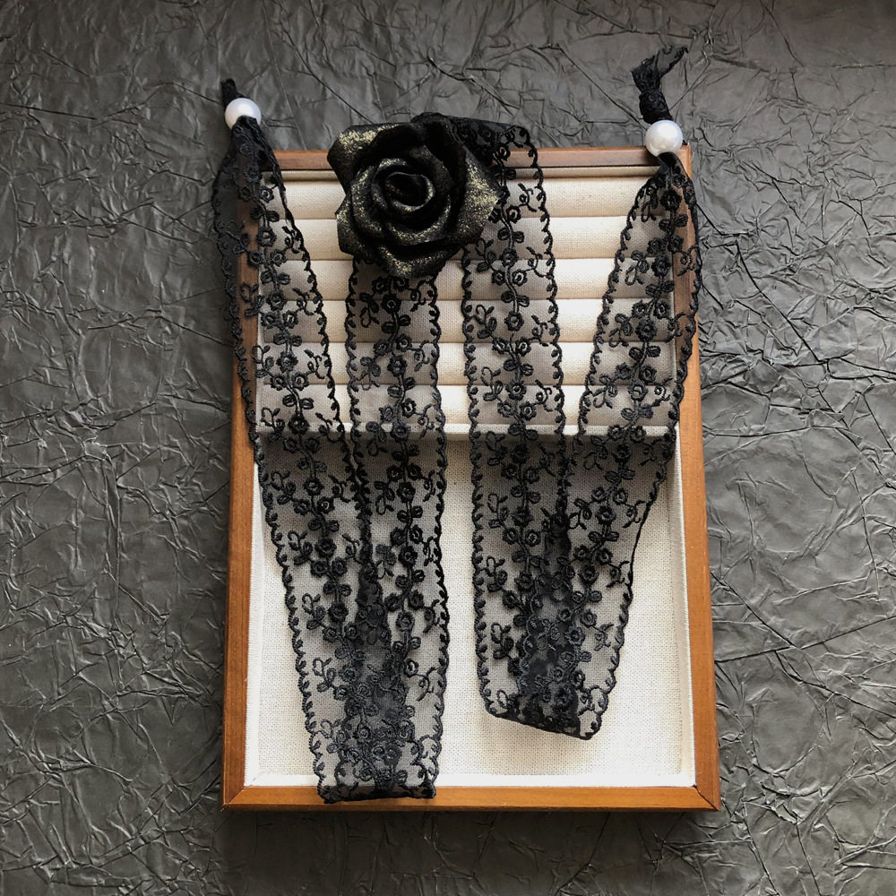 复古黑色蕾丝玫瑰花优雅蝴蝶结系带项圈项链choker锁骨链颈带配饰